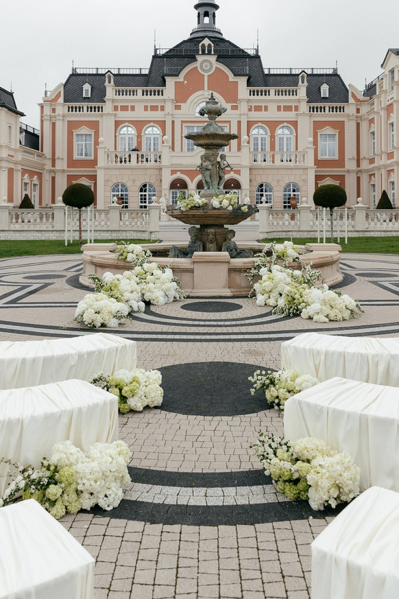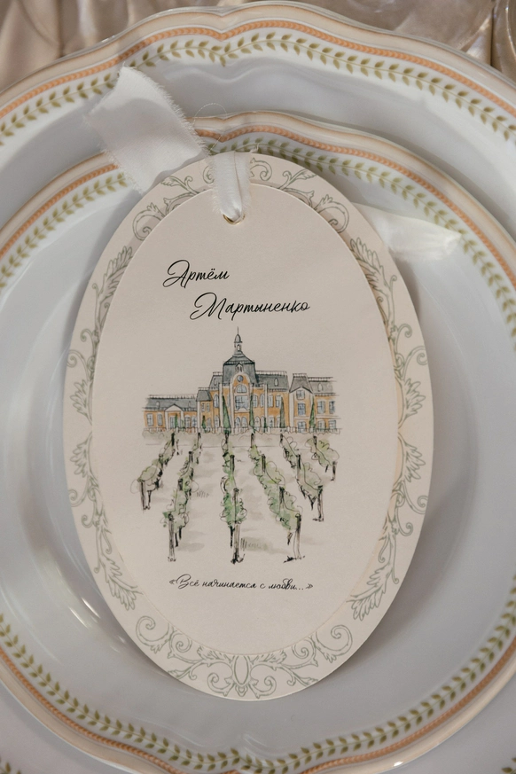 Идейным вдохновением свадьбы послужили общие увлечения пары: классическая литература и любовь к хорошему вину. «Все начинается с любви» - пронзительная фраза Р. Рождественского из любимого стихотворения невесты легла в основу концепции. Выбор локации пал на аутентичный замок «Шато де Талю», расположенный посреди виноградников, и он на 100% совпал с их пожеланиями.