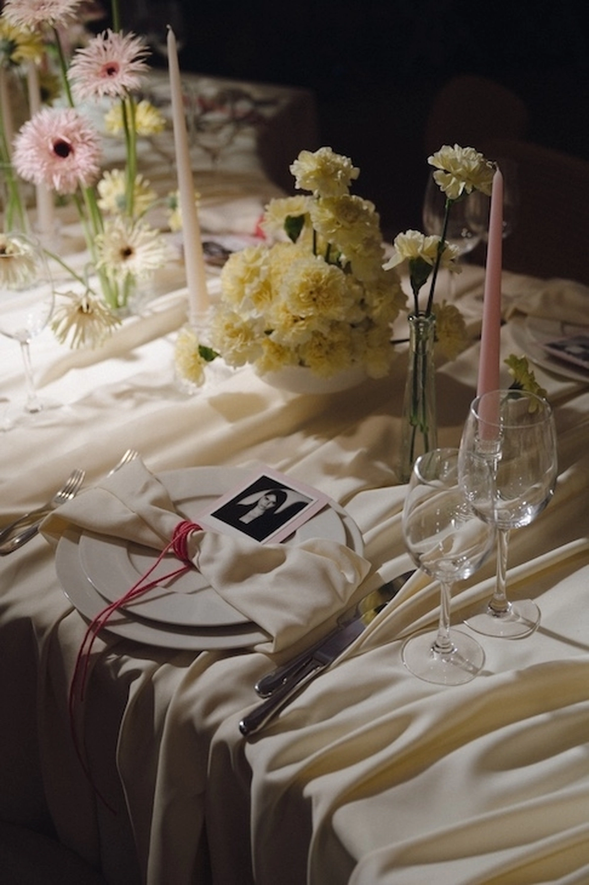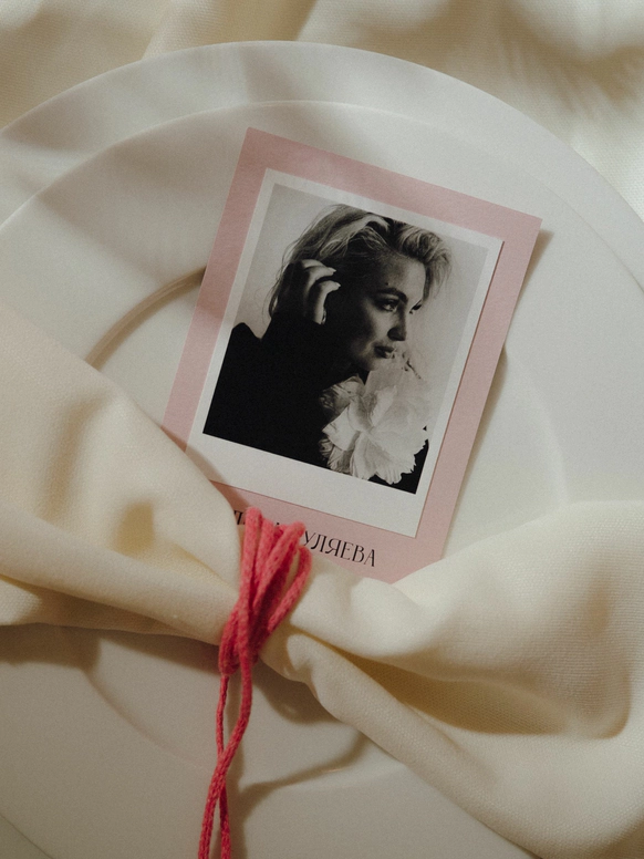 Декор был выбран в стиле современной классики: изящные драпировки оттенка «сливочное масло» и нежная, но яркая флористика. Мы поддержали атмосферу уюта и семейности, сделав рассадочные карточки с фото каждого гостя.