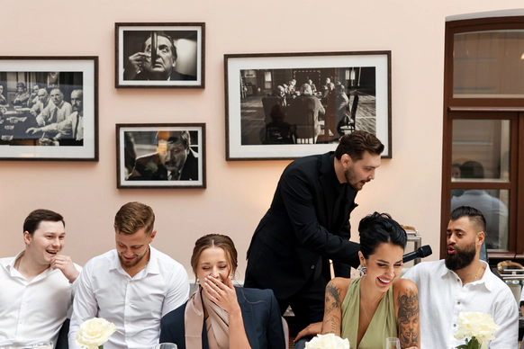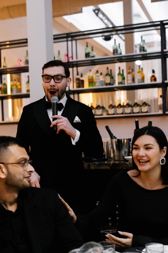 Я занимаюсь импровизацией. Выступаю сольно и в составе команды. Работаю без папки. Папку включаю дома для двух сыновей. Однажды на главной сцене дня города мне сказали: «Ты нарушаешь правила сцены, но почему-то очень хорошо держишь зал». Я не стал исправляться и до сих пор объявляю там хедлайнеров. Иногда я наивный. Иногда немного неуклюжий. Зато живой — и это чувствуют быстрее, чем выверенные формулировки. Я работаю от реакции. Мне важно не как надо, а как сейчас. Иногда за это дают значок лучшего игрока на импровизационных батлах. Чаще — просто доверие людей. Говорят, я самобытный. Иногда говорят, что я легенда. Я улыбаюсь и продолжаю делать свою работу. И обычно в какой-то момент в зале становится интересно: а как его зовут? Если вам тоже стало интересно — меня зовут Денис Акула. И совсем необязательно начинать с фразы «добрый вечер».