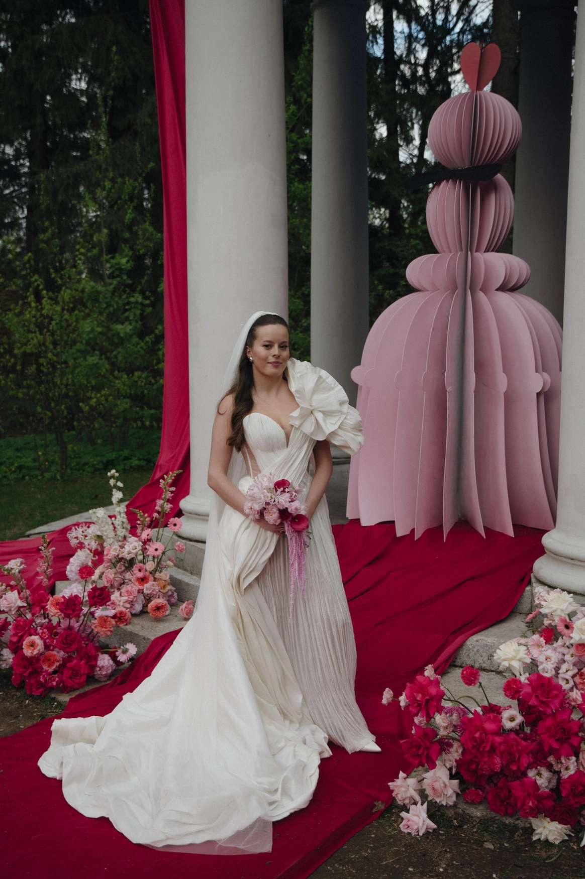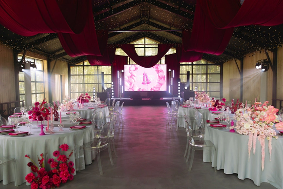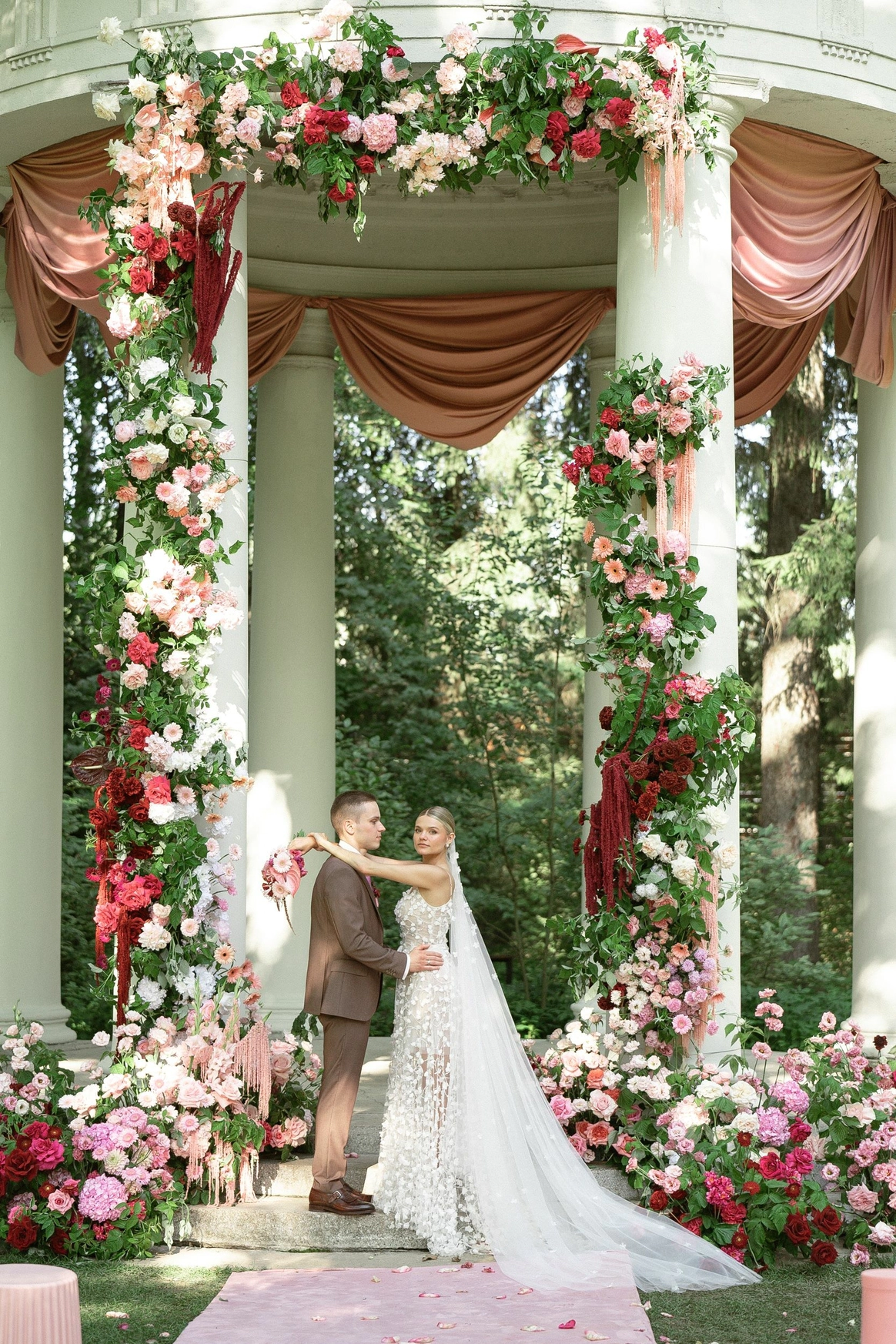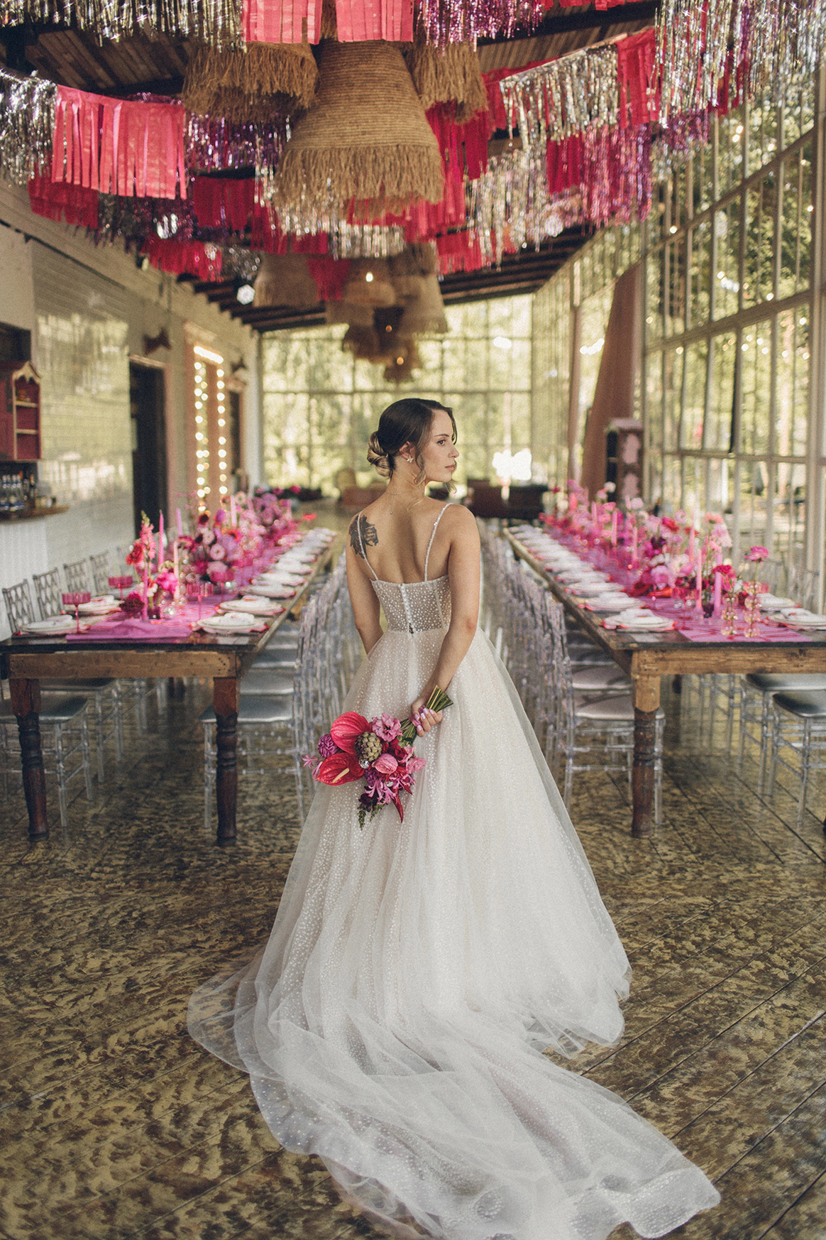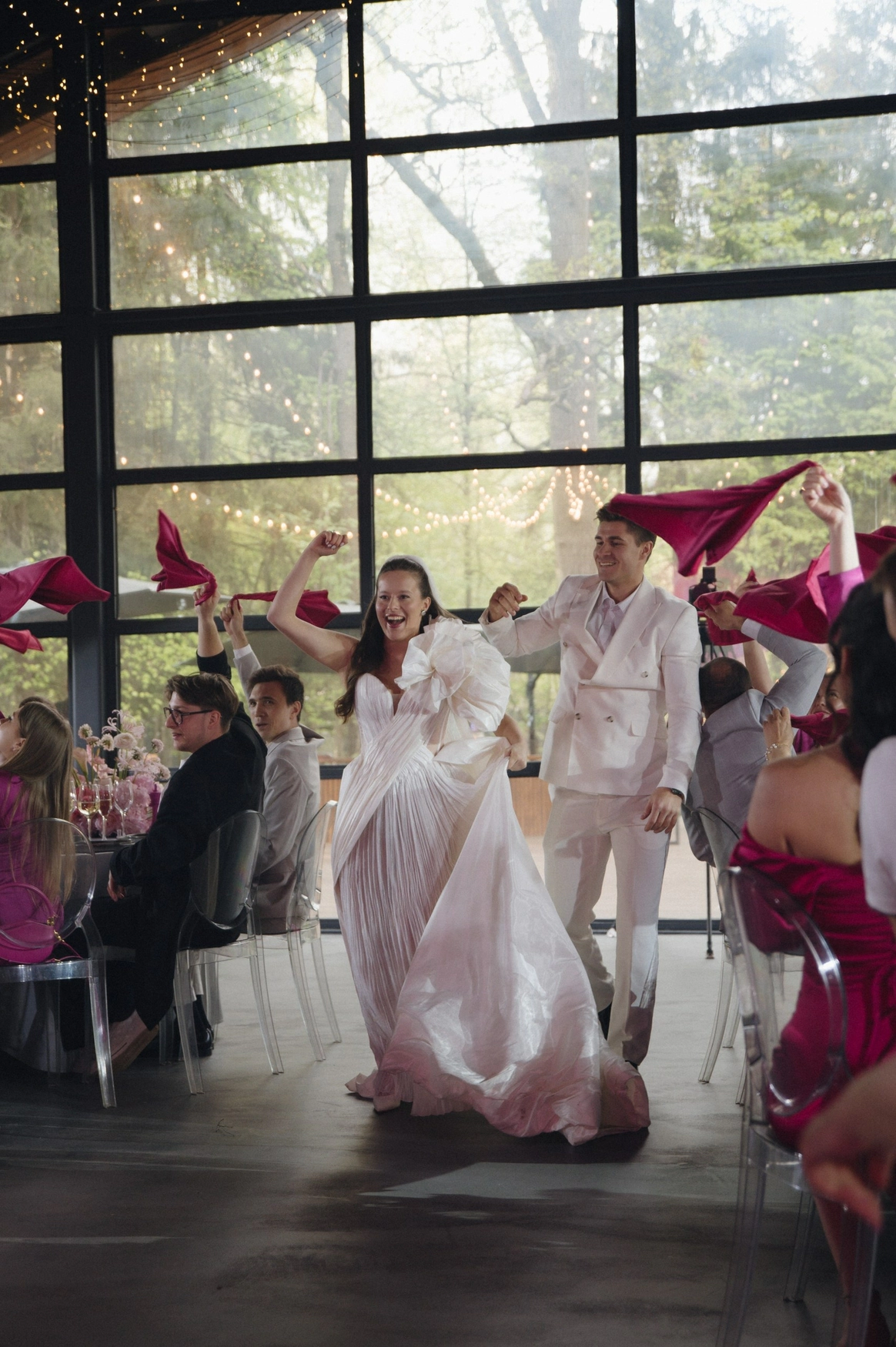 Алина мечтала о яркой свадьбе, поэтому главным оттенком оформления стала сочная фуксия!