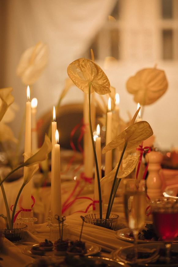 3. В декоре должны быть каллы и антуриумы, т.к. это любимые цветы невесты