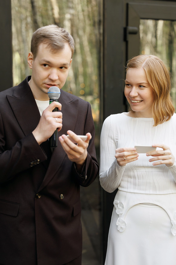 На церемонии пара читала не клятвы, а обещания, которые им написали гости на велком-часе.