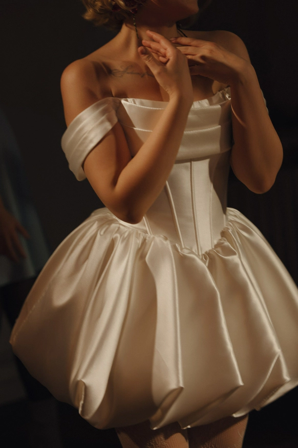 - свадебному платью, вместо него у нас были юбка и пояс из Антибрайд, лонгслив, белые колготки и балетки