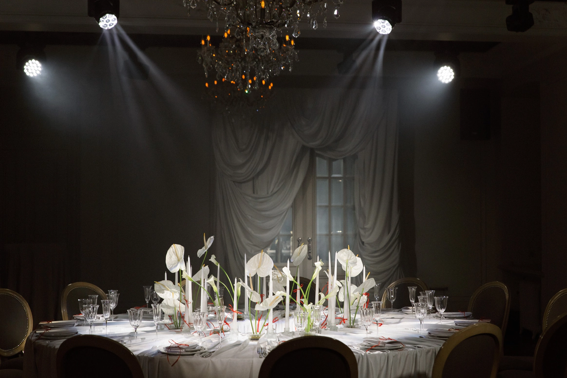 Запрос пары: утром роспись в ЗАГСе, далее элегантное камерное мероприятие без лишнего претенциоза, но с красивым декором и световым сопровождением, аккуратная площадка и чтобы гости и сама пара чувствовали себя комфортно.