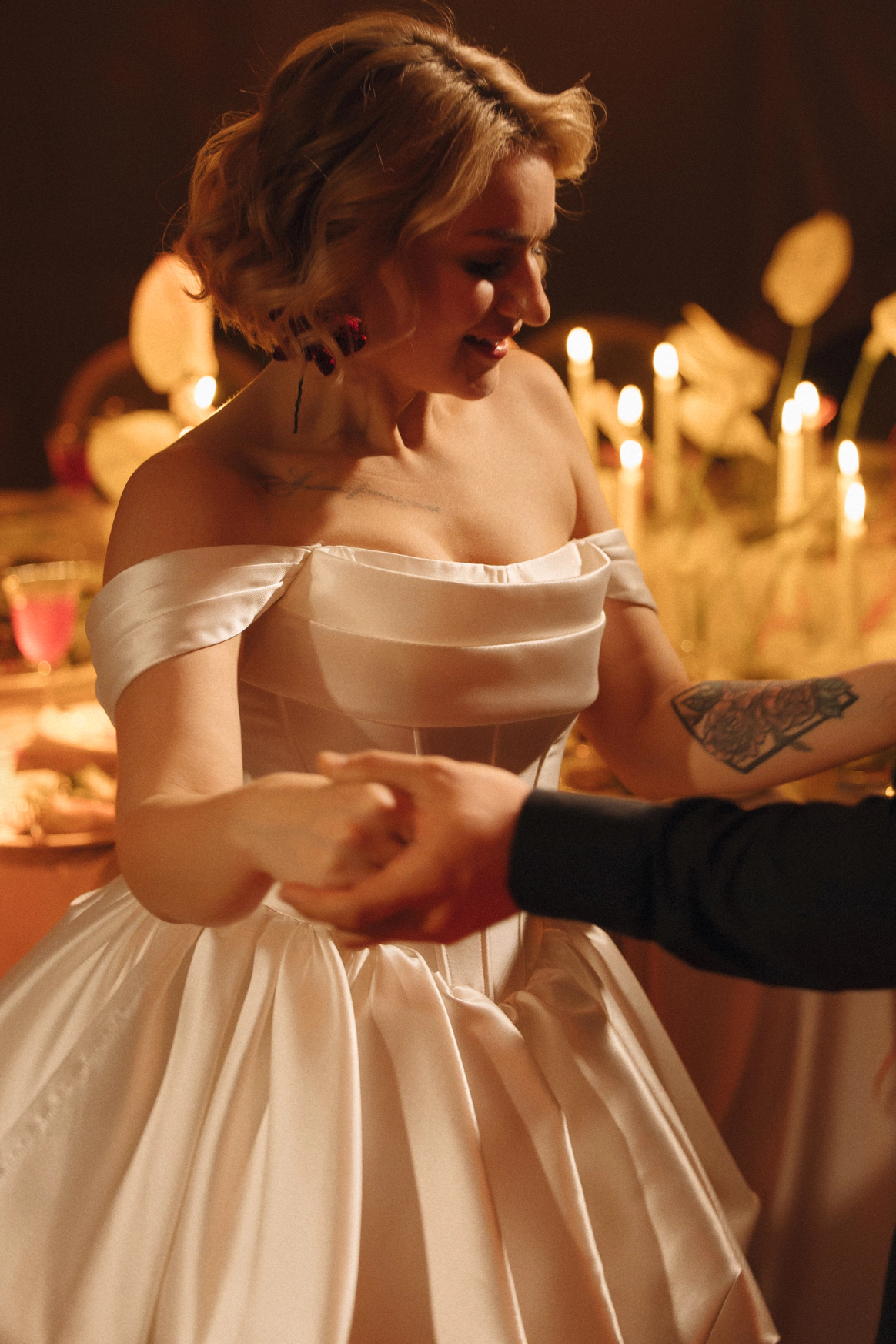 Концепцию мы придумали сразу - Without flowers, please (без цветов, пожалуйста), суть даже не в том, что не будет цветов, а в том, что мы поменяем привычный взгляд на свадьбы и смело можем сказать НЕТ таким привычным вещам, как: