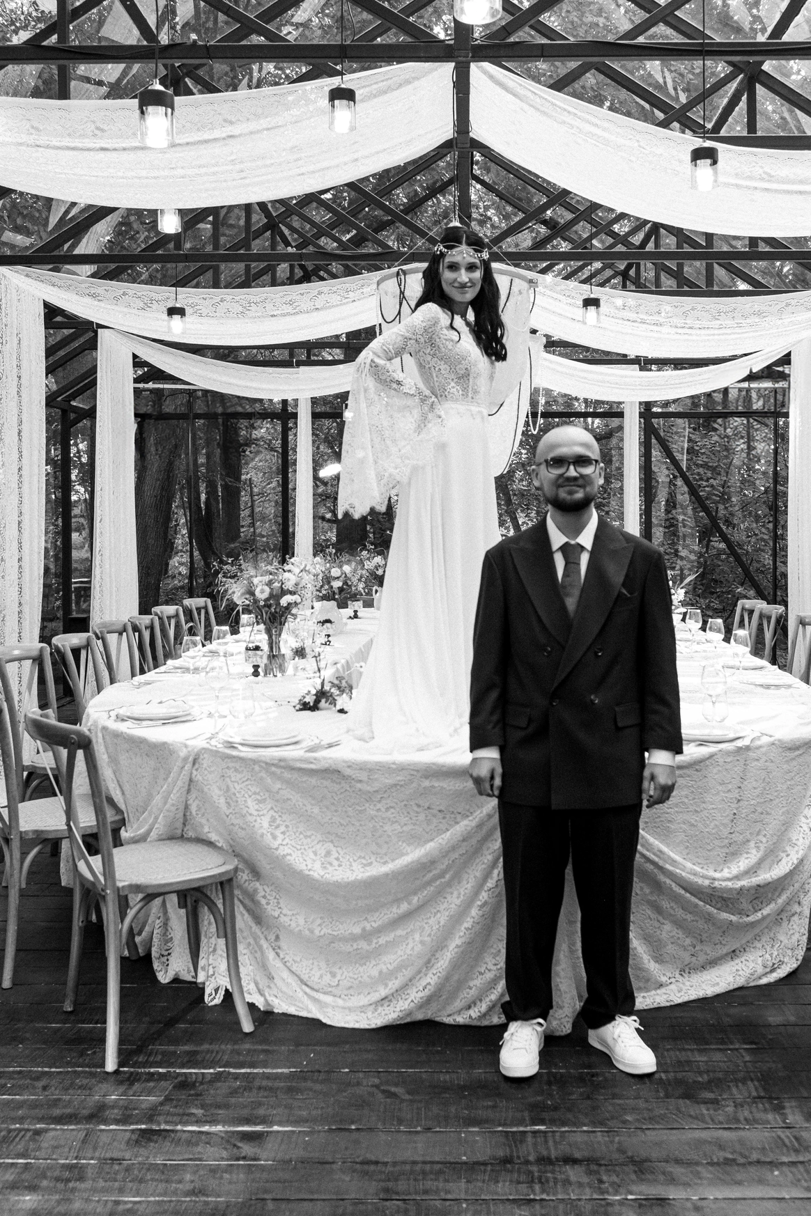 Однако глубоко уходить к корням русским нам и паре не хотелось, поэтому костюм у жениха был овер-сайз, а традиции с выкупом и караваем мы убрали вовсе, все таки мы за современность.