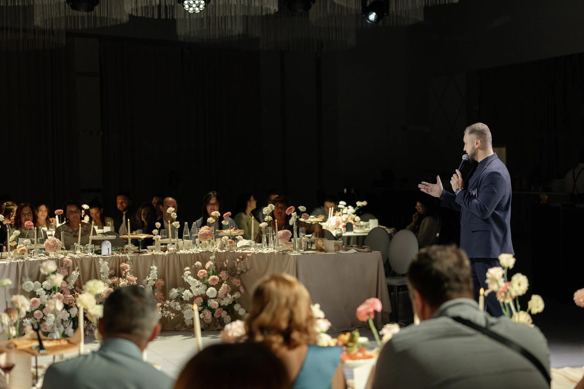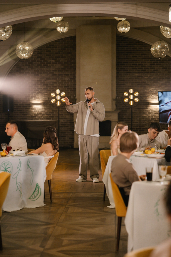 ⁃ Ведущий, импровизатор, стендап-комик ⁃ Участник юмористических проектов на Первом, СТС, ТНТ, VK Видео ⁃ Вел мероприятие в дуэте с Митей Хрусталёвым ⁃ Окончил основной курс Школы драмы Германа Сидакова ⁃ Автор шоу на YouTube, RuTube ⁃ Сценарист сериалов на ТВ Суперсилы: - юмор 10 из 10 - эмпатия 12 из 10 - импровизация 10 из 10 Сцена для меня не про эффект и не про форму. Она про контакт. Про живую связь с людьми. Про умение удерживать внимание так, чтобы зал чувствовал себя частью происходящего, а не просто зрителем. Когда я веду мероприятие, я создаю атмосферу пространства. Чтобы смех звучал искренне, паузы ощущались глубже, а эмоции переставали быть фоном и становились главным. Пожалуй, я люблю свое дело именно за это — за эмоции. За возможность хотя бы на время отвлечь человека от суеты, тревог, новостей. Дать ему разрешение посмеяться над собой, переключиться, просто выдохнуть.