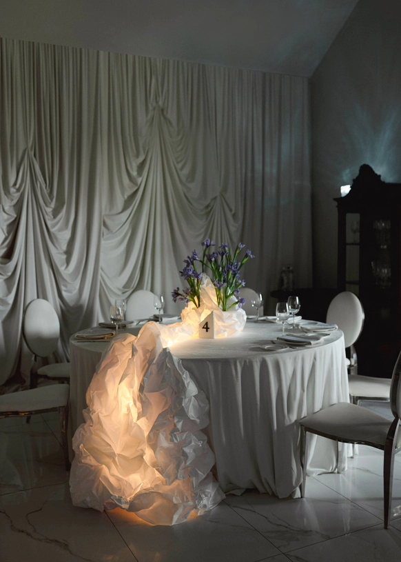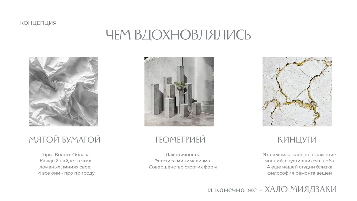 В этом проекте мы реализовали давнее желание поработать с фактурой бумаги и совместить ее с минималистичным декором, сохранив чистоту. Эстетика геометрии и строгих линий. Лаконичность форм. Акцент на пару.