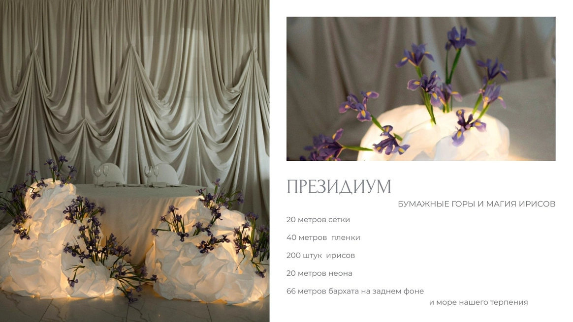 Привет! Мы студия декора из Калининграда. А Т М О С Ф Е Р А - это то, в чем мы живем, то, чем мы дышим и то, что мы создаем. Наша деятельность - это больше, чем работа. Это - по любви! В своих проектах мы стремимся к решениям, которые гармонично вписываются в пространство, не создают хаос и остаются актуальными вне времени. А самое главное - созвучны индивидуальности и желаниям наших пар. Нам близки классика и современная эстетика минимализма, мы стараемся найти баланс на тонкой грани “между”. Не боимся экспериментов и постоянно открываем новые горизонты как для себя, так и для наших клиентов.