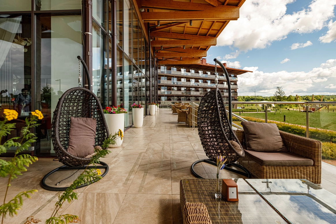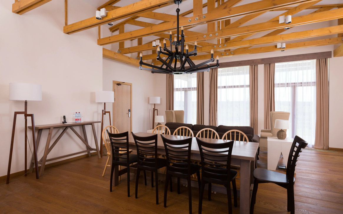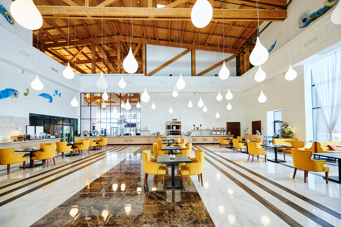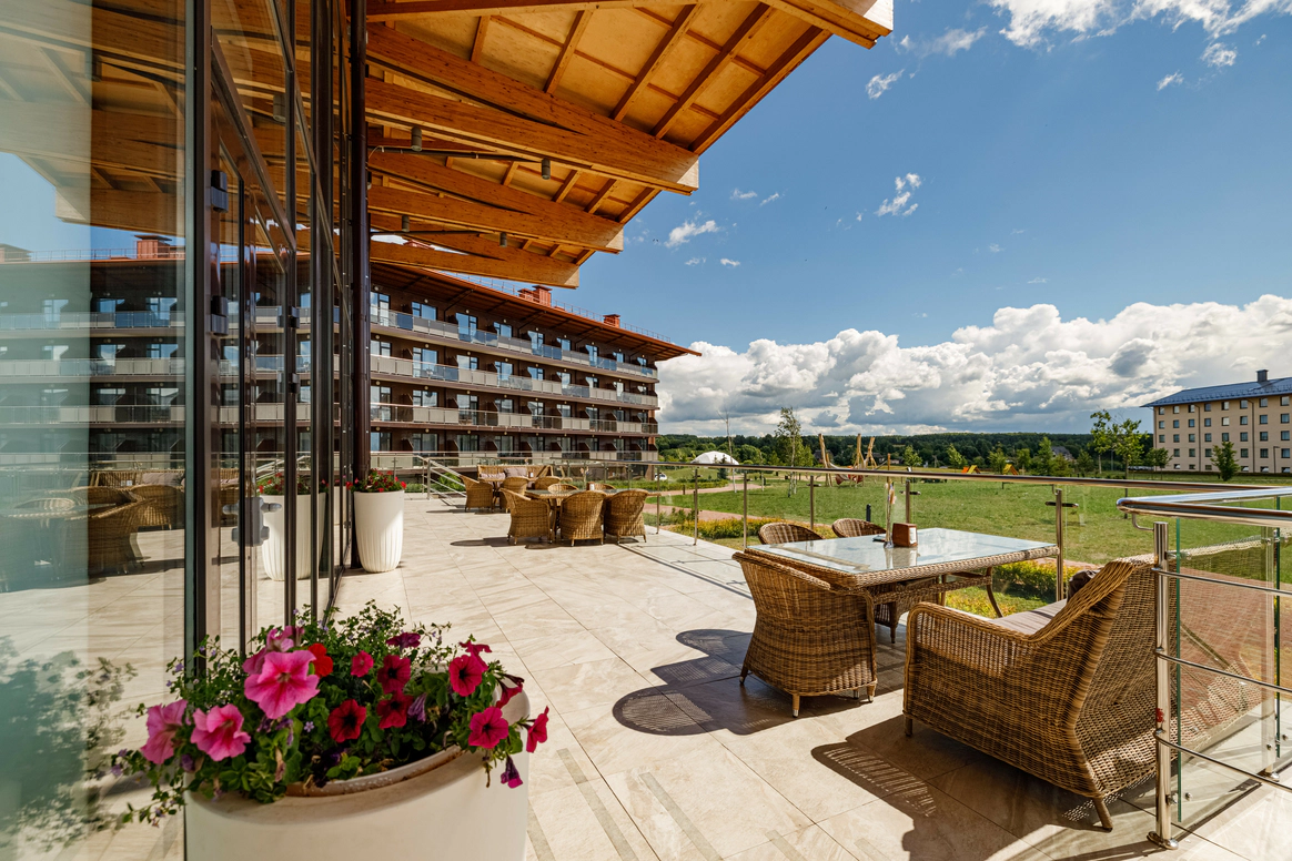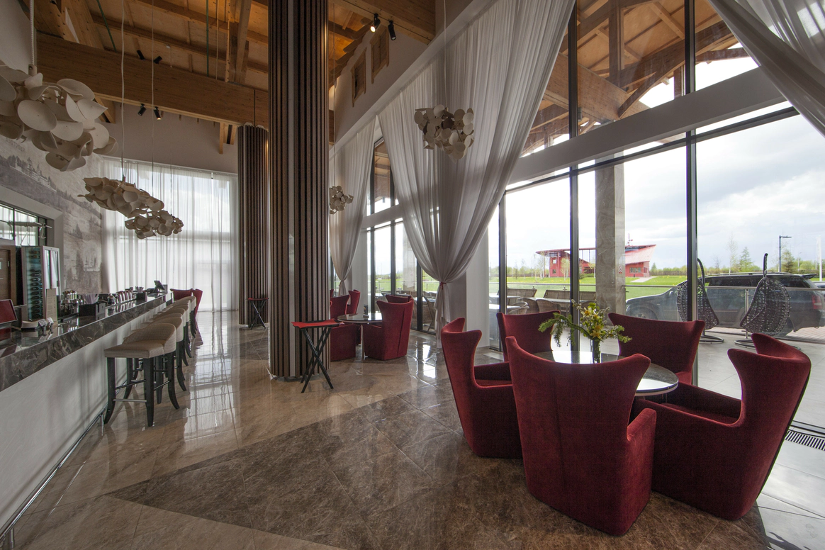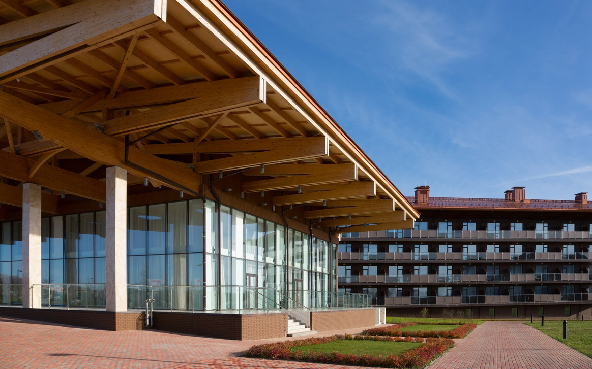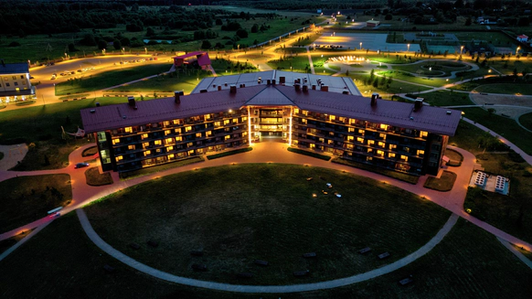 Загородный комплекс, расположенный на 32 Га природоохранной территории в черте Национального парка «Плещеево озеро», является флагманским проектом крупнейшей российской сети отелей AZIMUT Hotels. AZIMUT Парк Отель Переславль находится в самом центре «Золотого Кольца». Это закрытая территория с собственной инфраструктурой и прекрасными возможностями для организации мероприятий. Отель расположен в регионе с интересной историей и прекрасной транспортной доступностью – дорога проходит по скоростному Ярославскому шоссе (трасса М8). Комфортное расстояние и короткое время в пути (не более 2х часов), позволяют наслаждаться заповедной природой и местными достопримечательностями в любое время года. Во время пребывания в отеле вы сможете посетить необычные музеи и старинные памятники города Переславль-Залесский (Спасо-Преображенский собор 1157 года, Переславскую крепость), узнать историю зарождения российского флота (Музей «Ботик Петра I»), посетить волшебные и мистические места (Музей «Сказки» и «Синь камень»). Жемчужина региона - Озеро Плещеево находится в 30 минутах комфортной езды от отеля. Территория отеля с ровным живописным ландшафтом представлена двумя независимыми корпусами (SKY и FOREST) на 353 номера, и 26 коттеджами на 2 и 4 спальни для индивидуального проживания. Все номера корпуса FOREST оснащены умными колонками Яндекс-Станция, пользоваться которыми можно совершенно бесплатно. В номерах повышенной комфортности размещены VR очки с обширной библиотекой 3D видео. Отель предлагает разные форматы питания - «шведский стол», меню а-ля карт, отдельное детское меню. Широкий выбор напитков, в том числе авторских. Для приготовления блюд и напитков используются местные фермерские продукты. Место отдыха и релаксации – это SPA-комплекс с широким перечнем оздоравливающих и косметологических процедур (фотоомоложение, аппаратные уходы, пилинги). Комплекс включает современную термальную зону с банями и саунами, и кабинеты массажа и косметологических услуг. Дополнительный комфорт создают панорамное остекление комплекса, просторные раздевалки, изолированные лаунж-зоны, свежие лимонады и индивидуальные банные принадлежности (хлопковые полотенца, халаты, тапочки). На территории отеля работают круглогодичный прокат спортивного инвентаря, служба отельной анимации и детский мини-клуб. Если вы планируете свадьбу в живописном месте, отель предложит выгодные условия: бесплатный номер Люкс для молодоженов и площадку для выездной регистрации, комплимент от отеля, специальное банкетное меню, сопровождение мероприятия, индивидуальные условия аренды залов для проведения торжества. На ваш выбор будут предложены два летних шатра и один круглогодичный шатер вместимостью 140 человек каждый, и два зала-трансформера – «Переславль-Залесский» (300 кв метров) и «Кострома» (80 кв м).