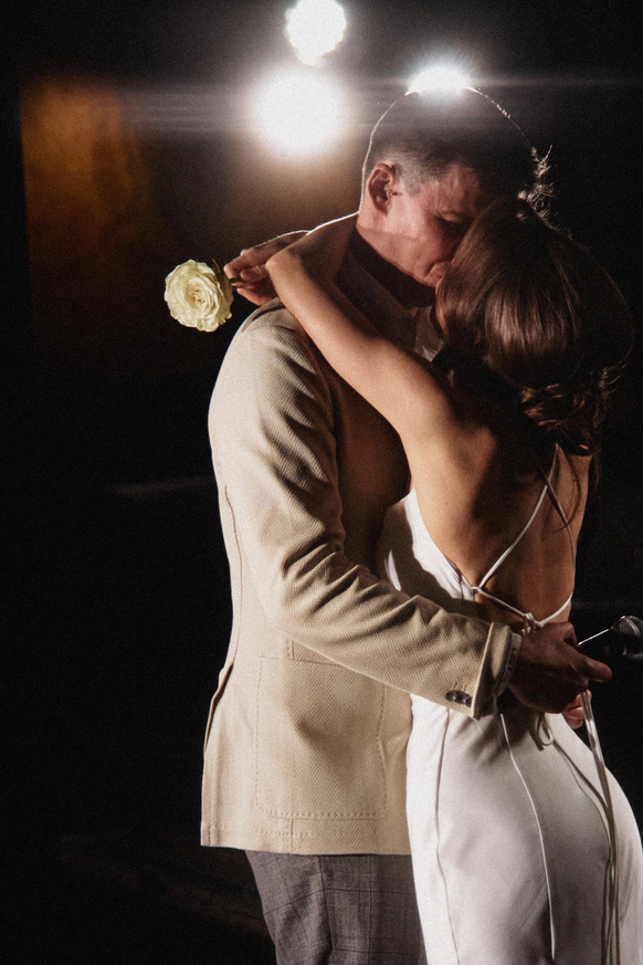 Отсылка к «Маленькому принцу» раскрывалась через смысл, а не прямые цитаты: бережность, внимание, ответственность за тех, кого любишь. Финальный жест - белоснежная роза от жениха - стал эмоциональной кульминацией вечера и точным символом их истории.