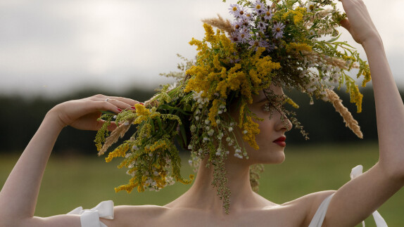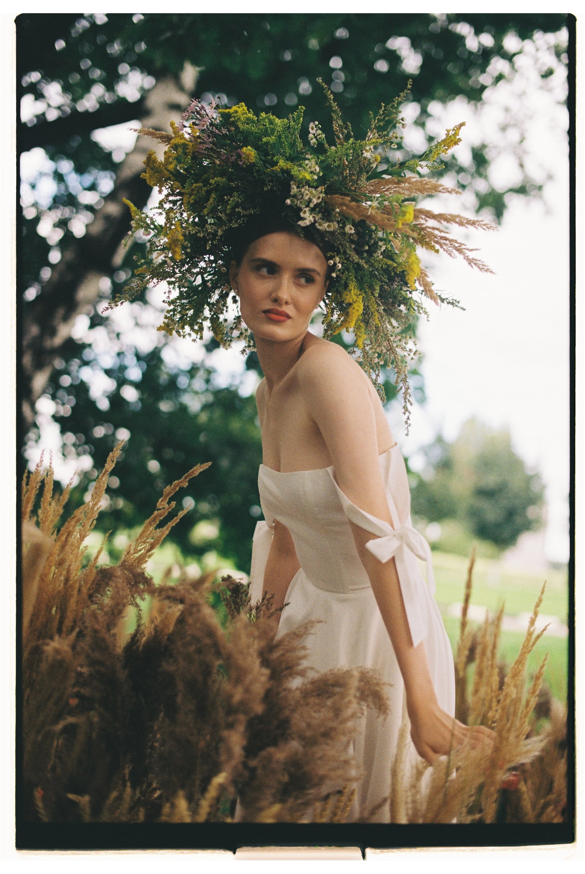 Косы в декоре – как отсылка к родному и любимому. Да, в прическу Кати мы тоже добавили несколько деликатных колосков.