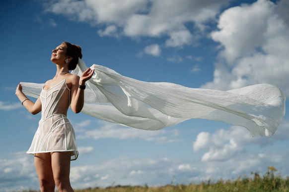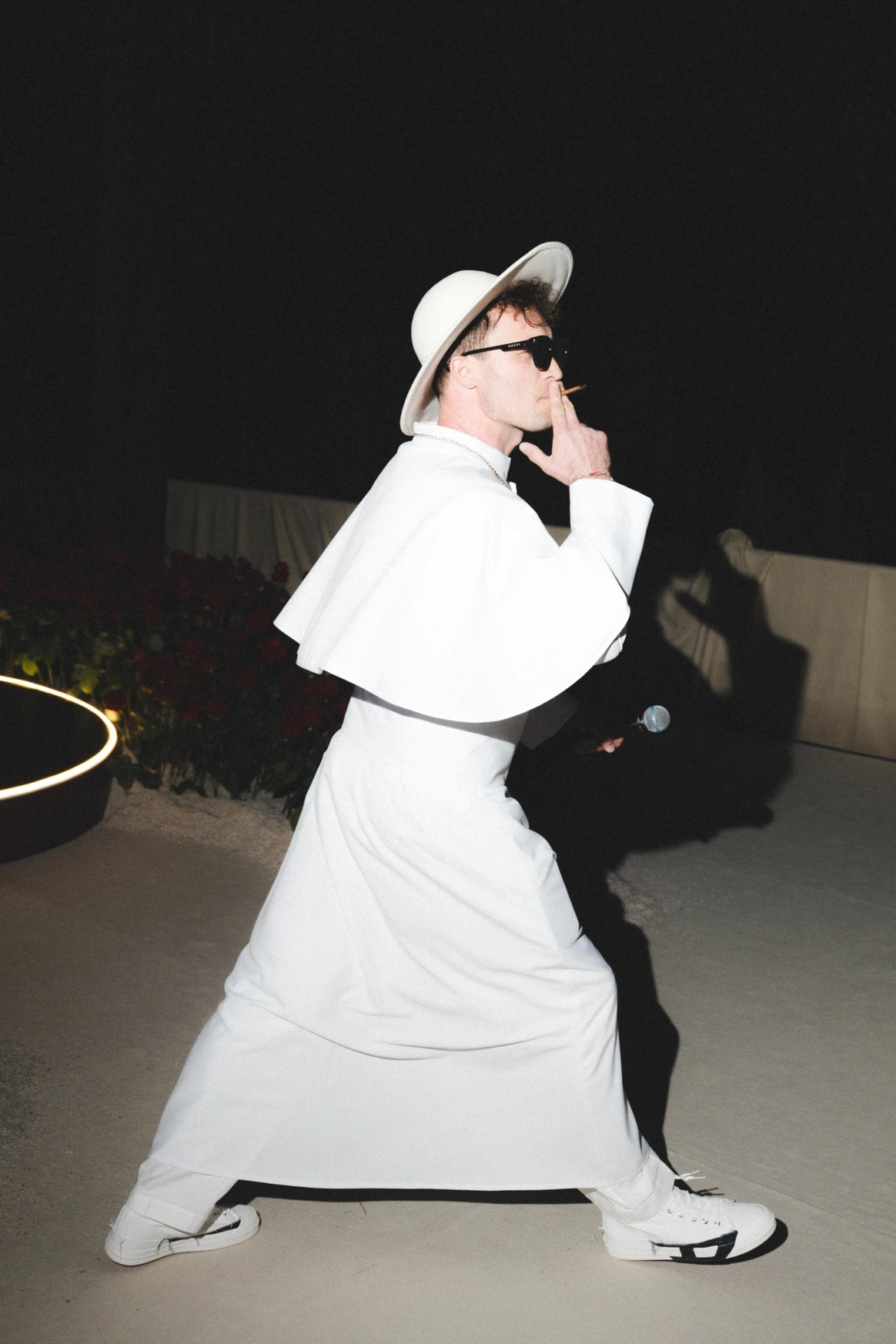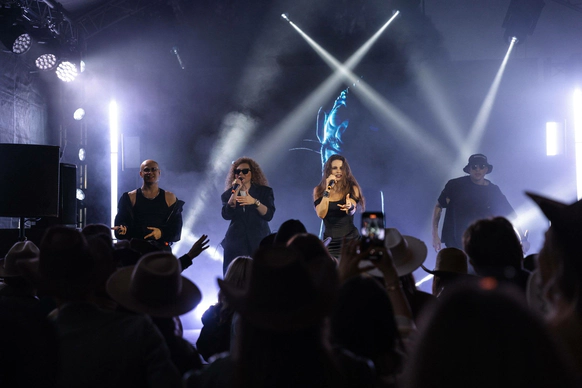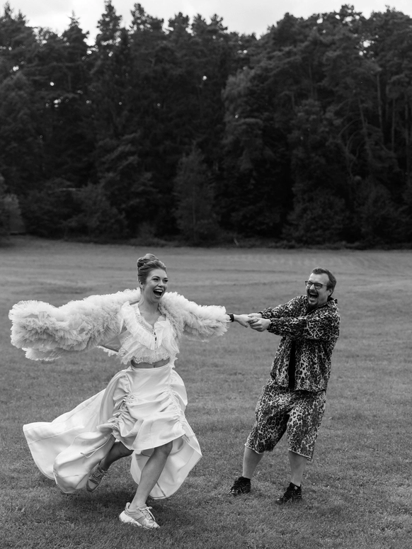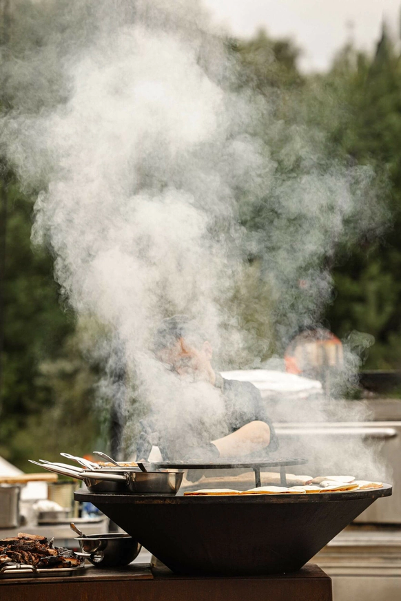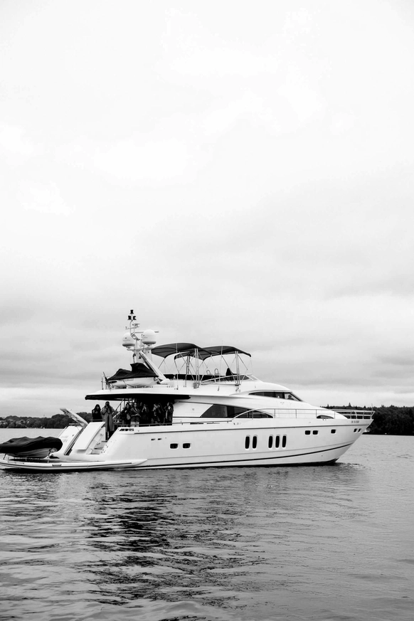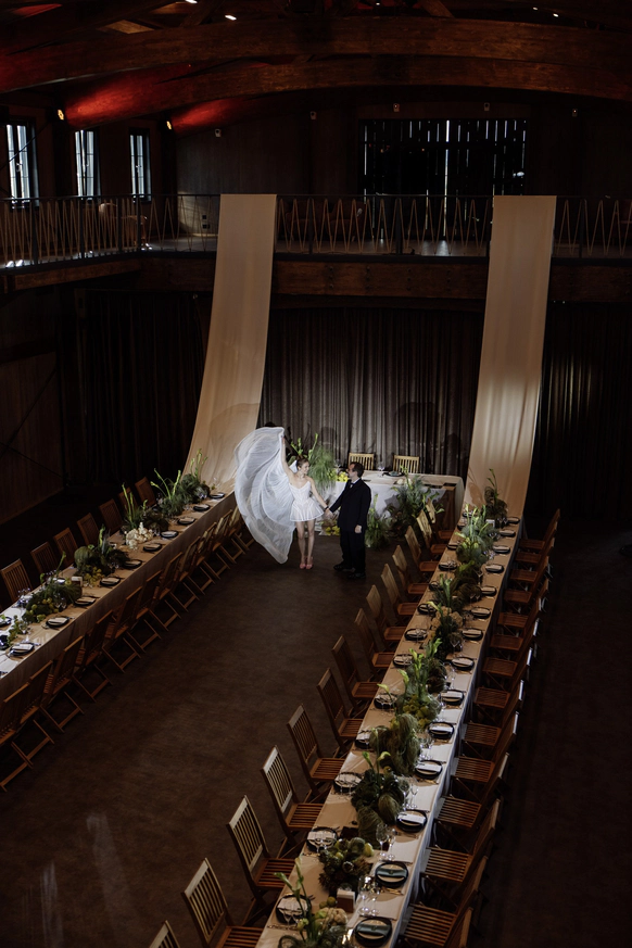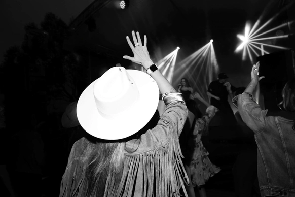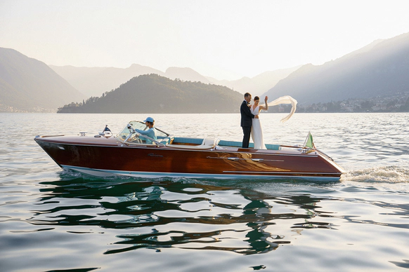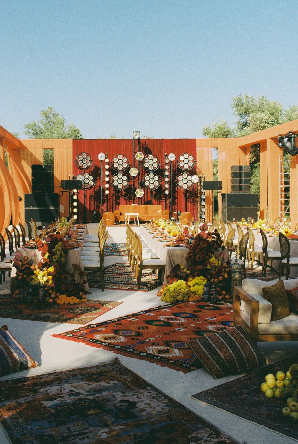 Мы сделали ставку не на утро невесты, а на утро жениха — сознательно разрушив свадебный канон. Вместо амбара — люкс Four Seasons с видом на Красную площадь. Казаки, ковбойские шляпы, пиво и блины с чёрной икрой — визуал в духе премиальной рекламы Marlboro. После сборов мужчины отправились в яхт-клуб, команда невесты прибыла на второй яхте, и первая встреча пары состоялась прямо на воде — яркая, дерзкая, кинематографичная. Образы пары — полный отказ от классики: вестерн-сарафан, замшевая косуха и ковбойская шляпа у невесты; деним и казаки у жениха. Для гостей разработана многоуровневая презентация дресс-кода, превратившая свадьбу в подиум ковбойской моды. Ужин прошёл в фестивальном формате с фуд-станциями на террасе. Церемония на закате: жених на мотоцикле, невеста на чёрном жеребце, в финале — шляпы в небо. Кульминацией стал концерт «Банд’Эрос» на открытой сцене.