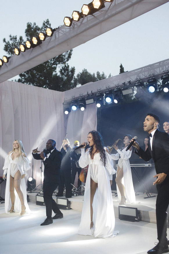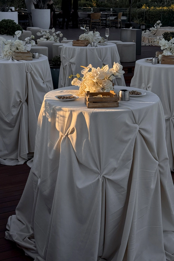 Несмотря на высокий бюджет, клиент требовал строгой оптимизации и подключил семейного аудитора. Мы привлекли латвийский технический прокат: 3 фуры с оборудованием две недели шли в Бодрум, что дало экономию более 90 000 € (≈50% от турецких смет). Увлечение невесты эзотерикой стало основой девичника body & soul: 22 участницы за 12 часов прошли 7 практик с привезенными из Москвы мастерами (стояние на гвоздях, медитация поющими чашами, гадание по книге Перемен и пр.). Для мужчин организовали яхтенную регату, хайкинг и барбекю в бухте. Все 3 дня — персонализированная забота о гостях: адаптированные меню, безалкогольное шампанское из Швейцарии, pop-up beauty bar, welcome-bags и nightly gifts с посланиями. Предсвадебный ужин прошёл в формате ток-шоу со стендап-прожарками гостей и шоу «Натальная карта». Кульминацией стала ночная церемония: записанный по ролям диалог пары превратился в аудиоспектакль среди 2 000 алых роз, завершившийся появлением Леонида Агутина как абсолютным сюрпризом.