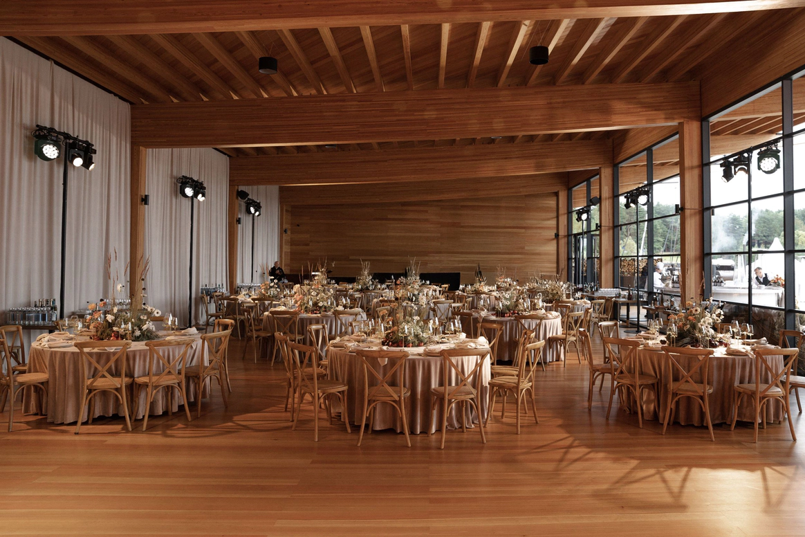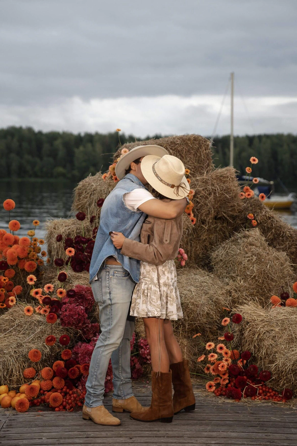 Когда Дана и Арсений обратились к нам, они сразу сформулировали запрос: «Мы хотим нестандартную свадьбу, без свадебного платья и смокинга. Праздник для нас и про нас». Пара оказалась невероятно активной: спорт, горные лыжи, путешествия, фестивали еды и музыки, окружение — креативные предприниматели с живой жизненной позицией. Они не любят напускной люкс, зато ценят стиль, эмоции и естественность. Стало очевидно: их свадьба должна стать уникальной идеей, отражающей свободу и характер. Так родилась концепция ковбойской свадьбы в стиле ранчо — смелой, стильной и редкой для Подмосковья. Эта необычная идея свадьбы идеально совпала с духом пары.