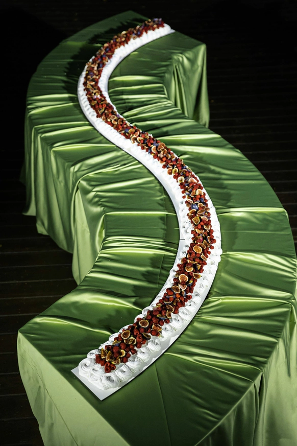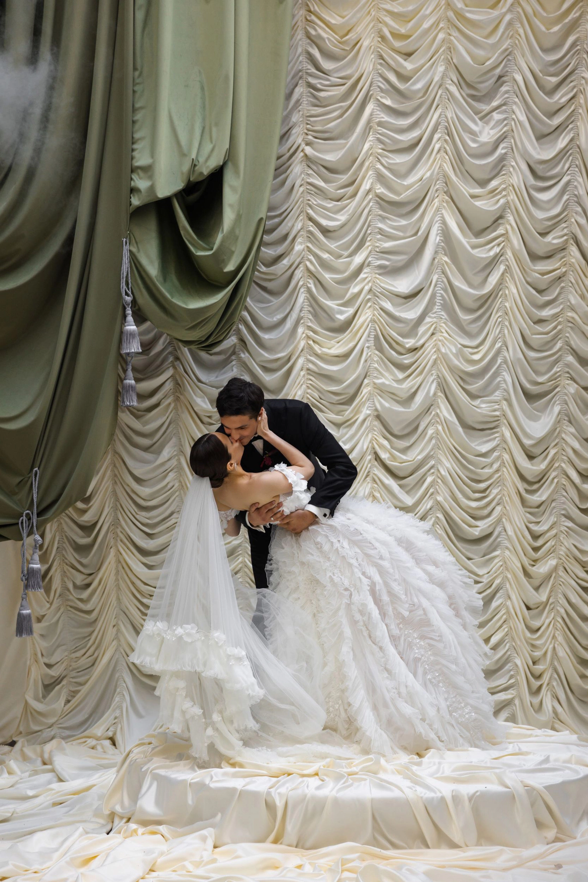 * Торт стал продолжением второго платья невесты: сложные драпировки были воспроизведены волна в волну.