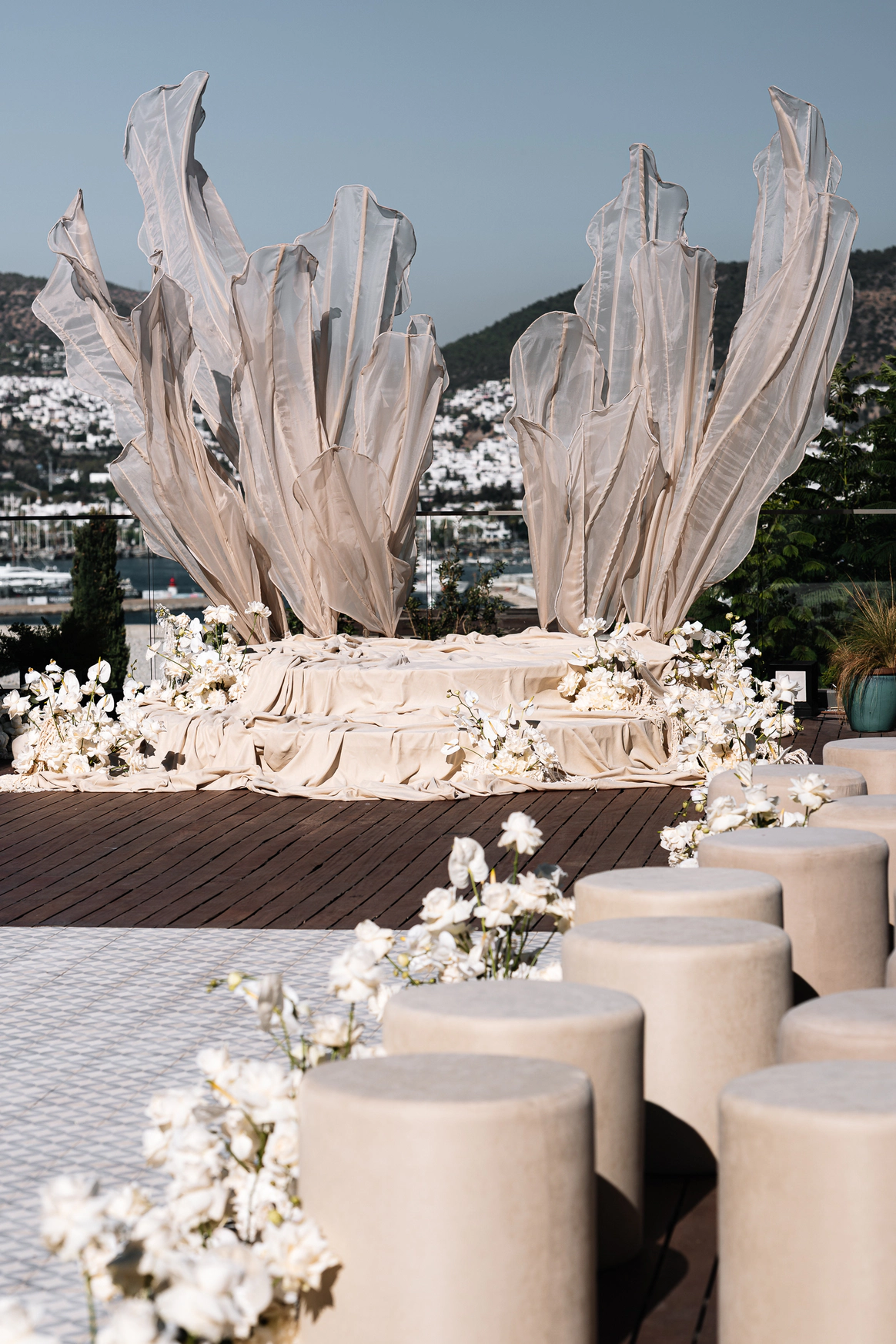 Даниил и Наталья пришли в августе с мечтой сделать свадьбу в Подмосковном HIDE и сделать это как можно быстрее - а именно 17 сентября, но на нужную дату площадка оказалась занята. И тогда пара сделала смелое решение, которое перевернуло весь сценарий: перенести свадьбу в Бодрум. Ни одного предварительного выезда на инспекцию площадок, полное доверие нашей команде и всего 5 недель на подготовку. Так родился 3-дневный свадебный уикенд Натальи, Даниила и их 60 гостей на живописное побережье Турции.