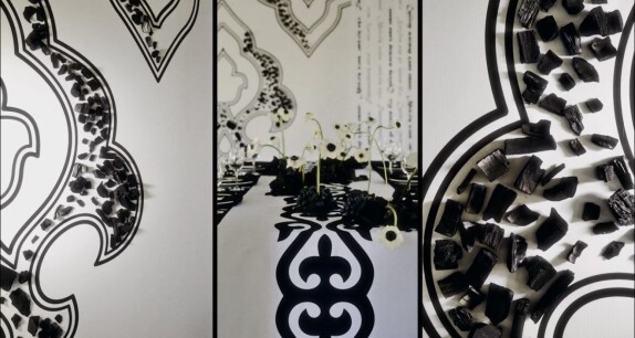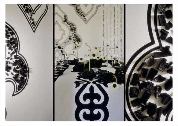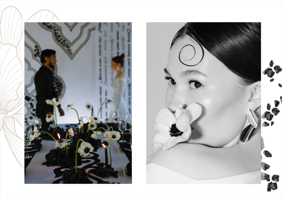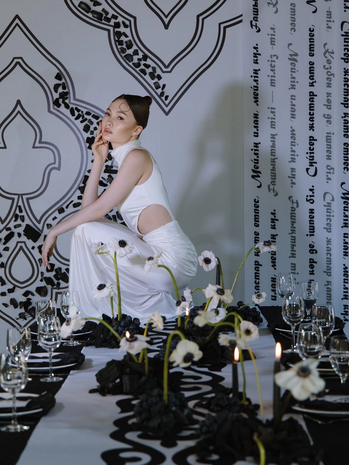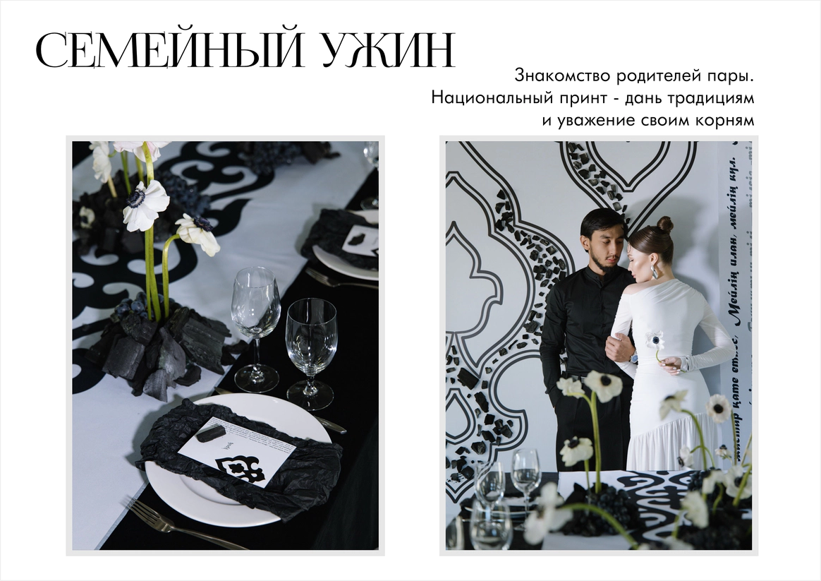 Предсвадебный ужин - знакомство родителей пары накануне торжества- здесь мы уделили особое внимание национальным корням пары через принт, использовали стихи великого казахского поэта Абая о любви для атмосферы чувственности и нежности.