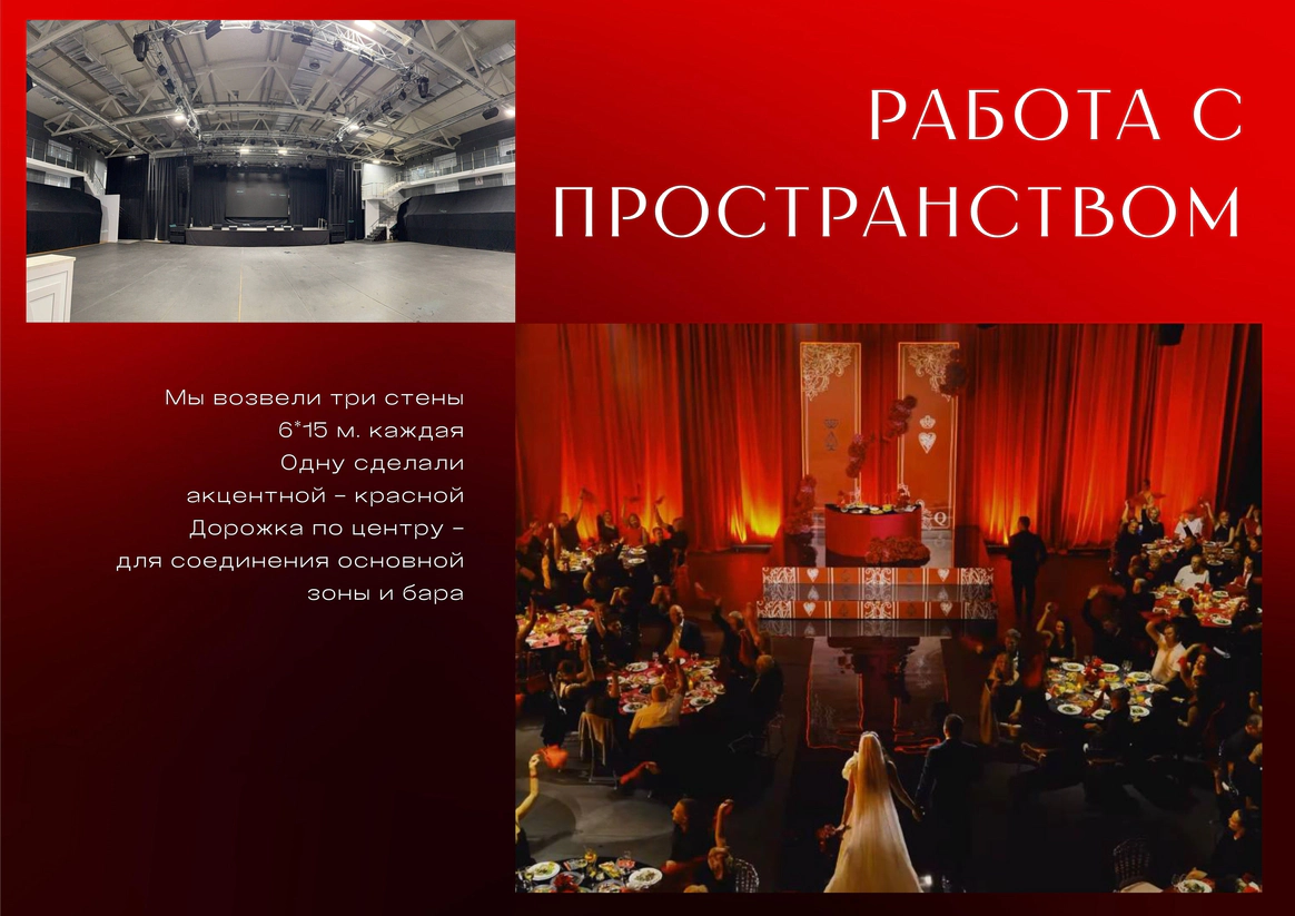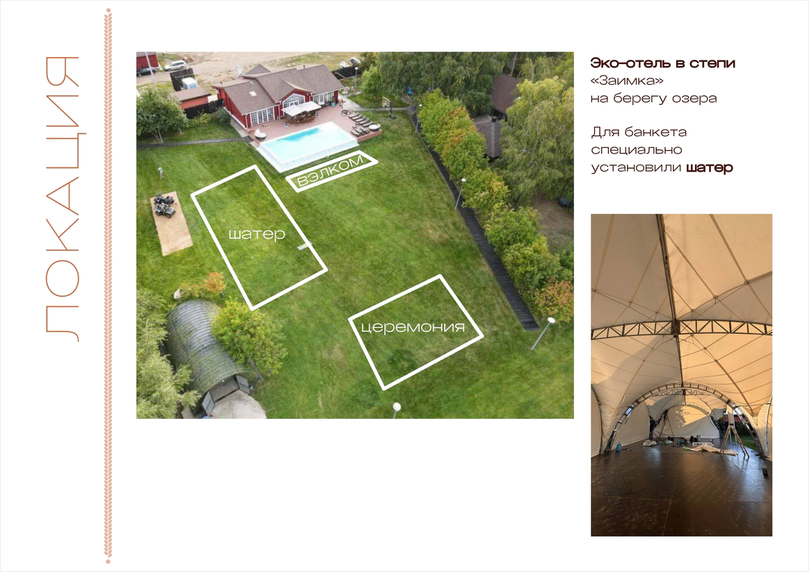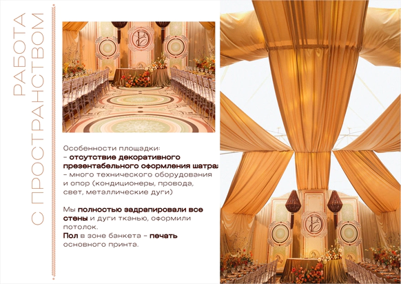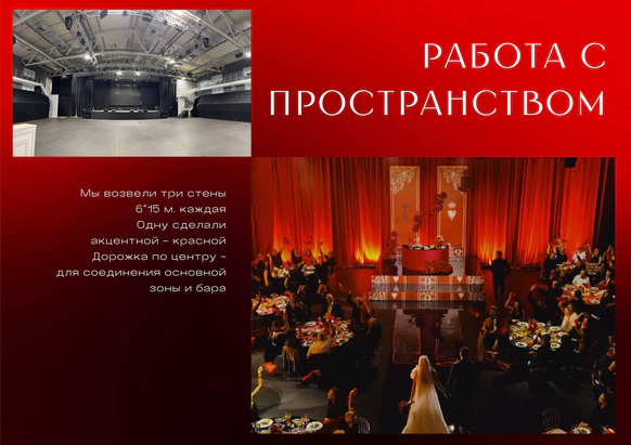 -разработать декор банкетной части для площадки, которую установят только накануне свадьбы;