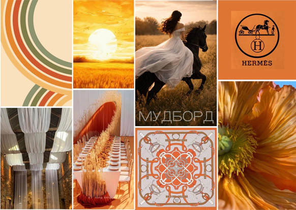 Принт, сочетающий в себе все важные элементы концепции: конный спорт, ремни и детали Hermes, палитру степных Полей в разное время года.