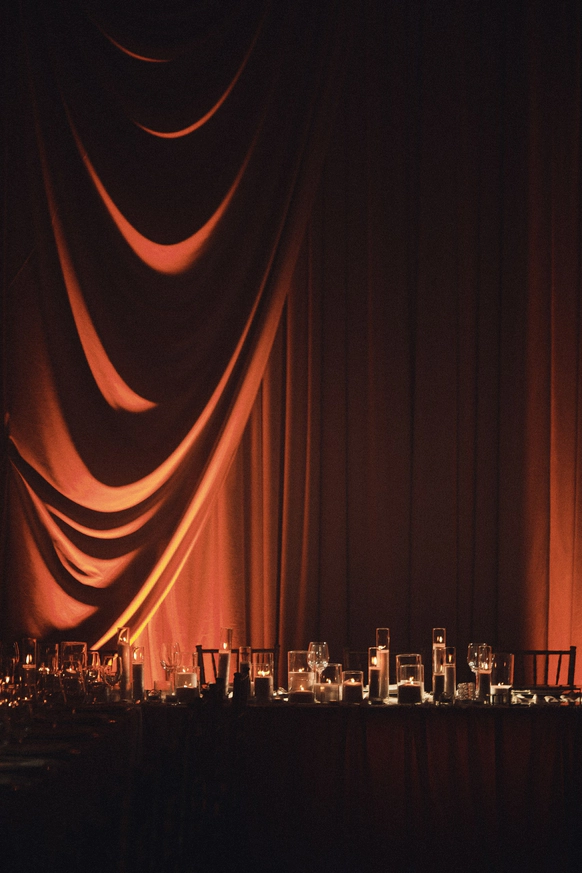 Подобрали площадку с высоким уровнем сервиса и проверенной кухней. Пространство дополнили светом и декором так, чтобы подчеркнуть архитектуру зала, добавить объём и визуально выстроить ключевые точки вечера: церемонию, welcome, основной зал.