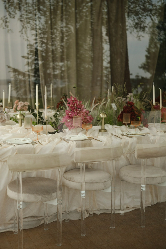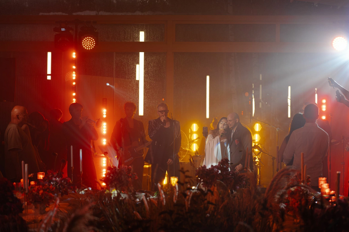 Пара не настаивала на конкретном декоре и полностью доверилась нашему вкусу и опыту. Мы взяли на себя все ключевые решения: от выбора площадки и команды до атмосферы вечера и тайминга.