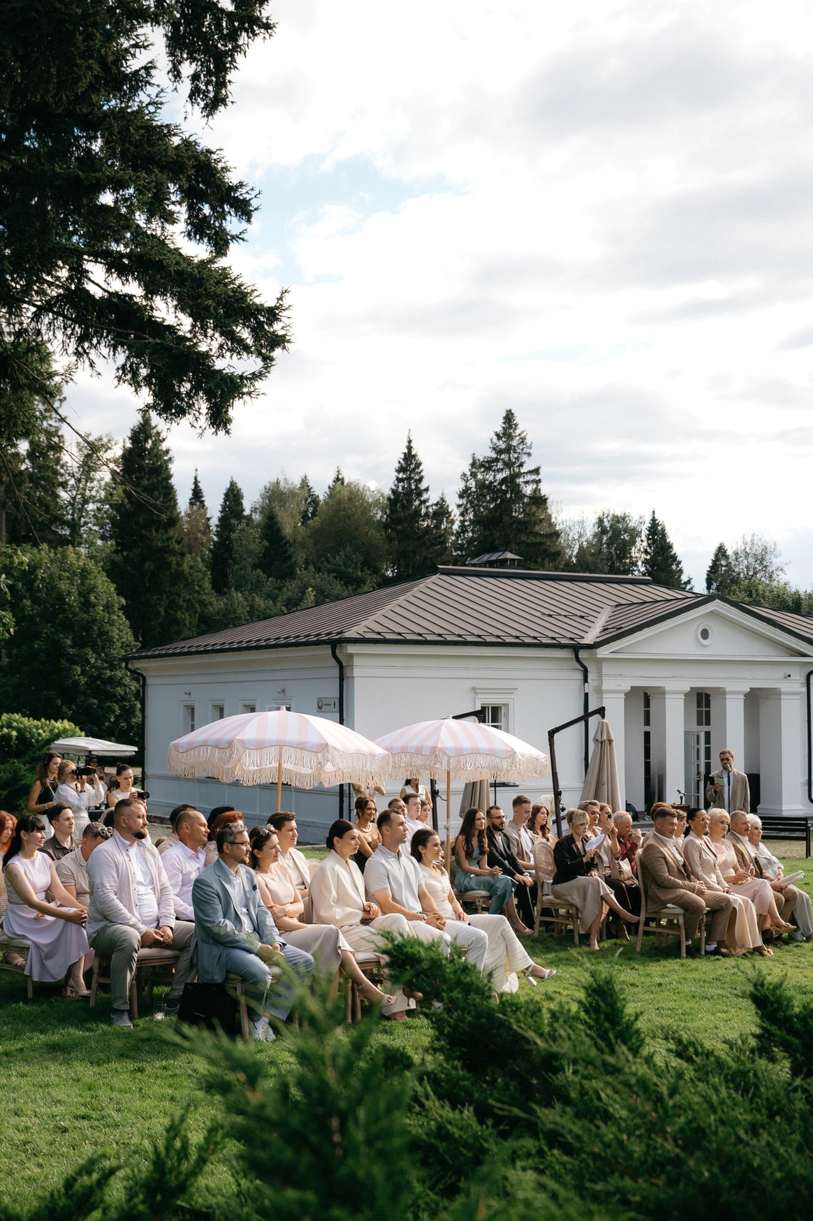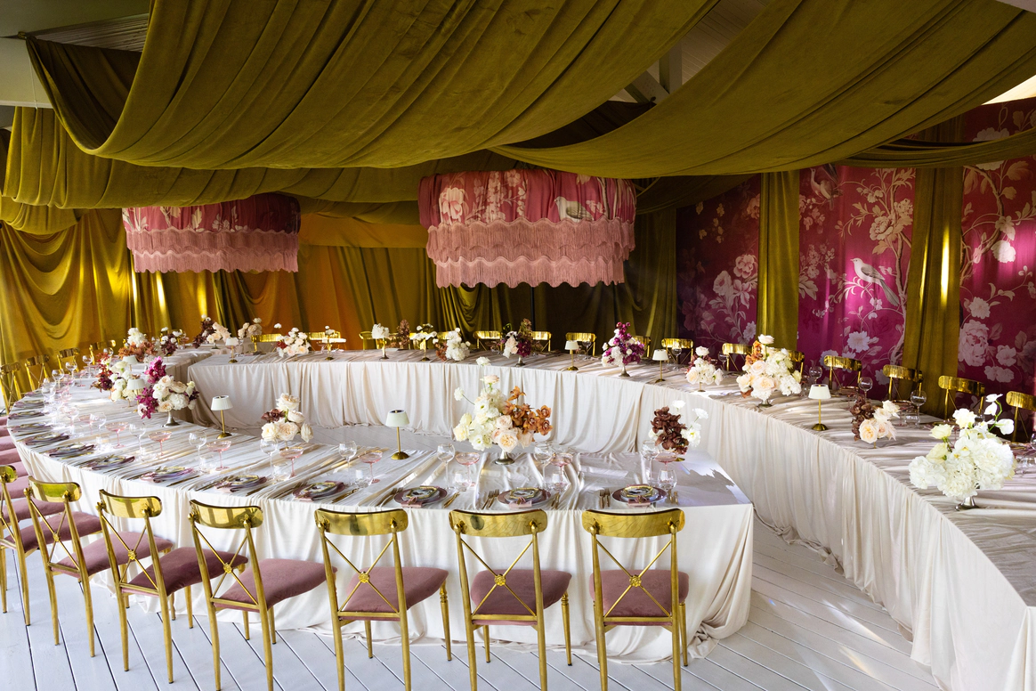 Основой проекта стала не «громкая» визуальная концепция, а ощущение камерности внутри большого события. Мы выстроили свадьбу вокруг трёх опор: