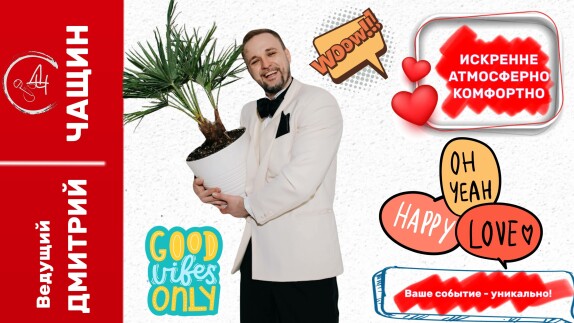 "Классное ведение с искренним отношением!" - могу сказать так о своей работе. Спортсмен, книголюб, певец, комик, альтруист, не скромный, но тактичный и вежливый. Говорю красиво и грамотно. Искренность, харизма, персонализация, внимание к деталям, умение создать нужную атмосферу - мои главные качества. Опыт ведения мероприятий от 7 до 2500 гостей! Обожаю персонализацию! Собираю материалы перед мероприятием (фото, видео, тексты, факты) всё, что поможет мне сделать ваше событие уникальным. Подключаю ИИ. Работаю с гостями до мероприятия и мы делаем крутые видео, конкурсы, сюрпризы - сложно, но это того стоит! Знаю гостей в лицо и по именам. Полностью отдаю себя, ради счастливых эмоций и улыбок! Бережно и с любовью отношусь к вашим событиям. О своём хобби: В 2008 создал группу "Город Рифм". В 2009 "выстрелила" песня "Весна" на всю Россию. Композиции входили в ротацию: "Европа Плюс", "Русское Радио", Радио "ОК", "Love Radio", "DFM". Спустя 10 лет вернулись, сменив название на "БЫВШИЕ".