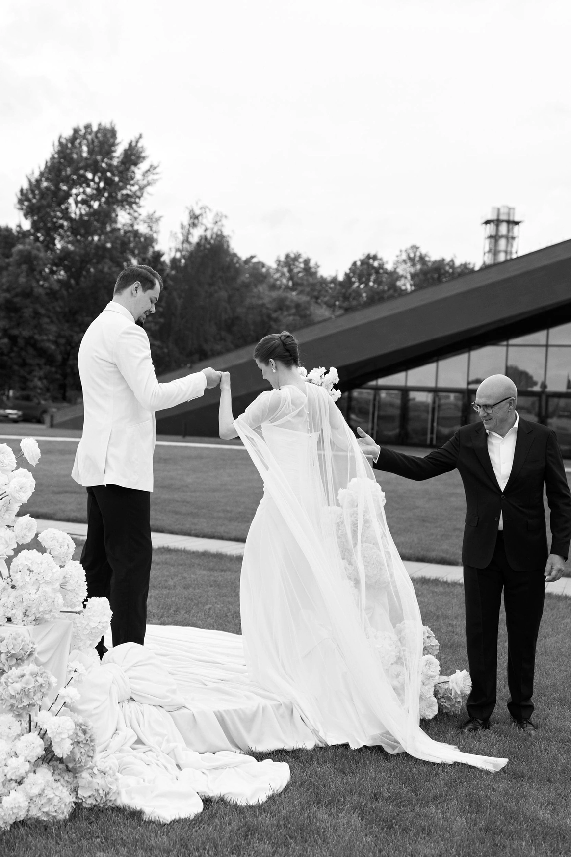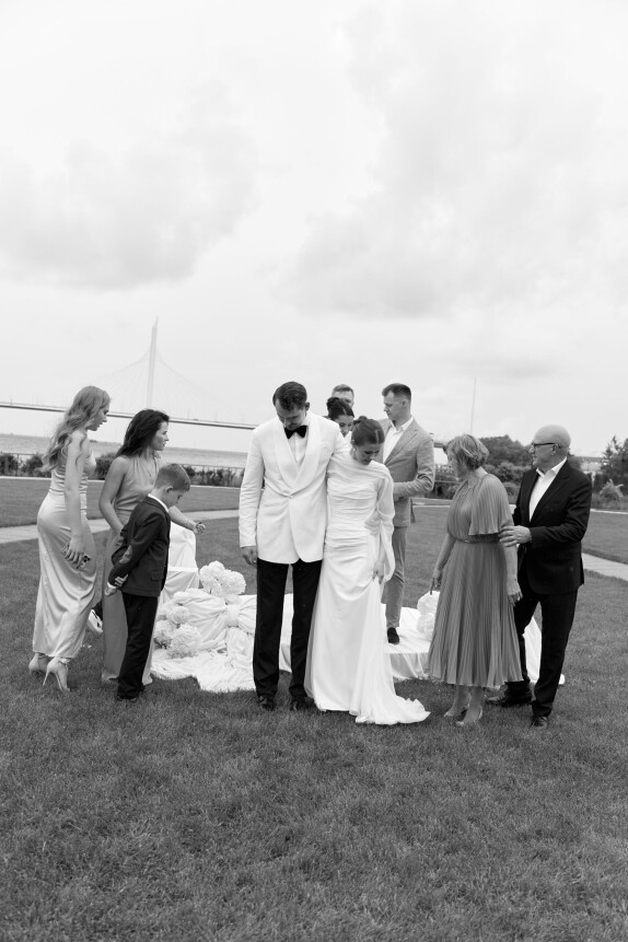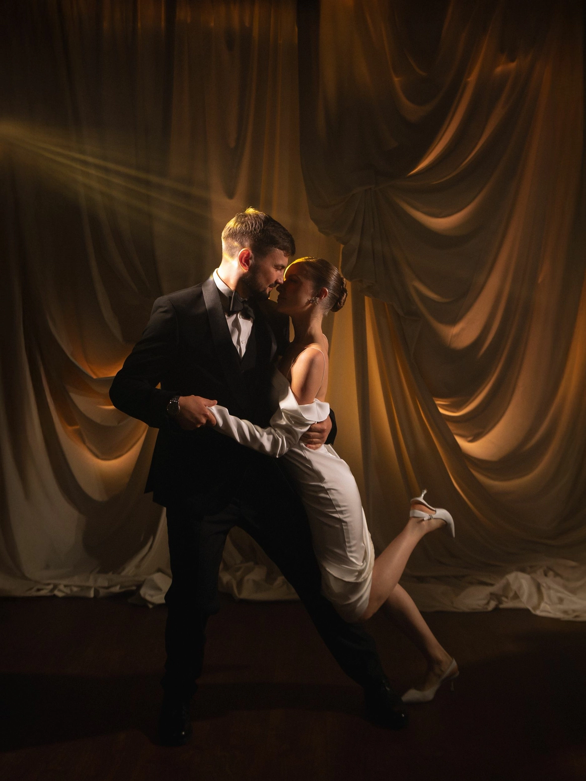 Лиза - мастер спорта по бальным танцам. Саша - ceo бренда спортивного инвентаря. Мы почувствовали их как Президента и Первую Леди. Идеально выверенные во всем. Поэтому в свадьбе мы придерживались классических форм, но старались сохранить актуальность