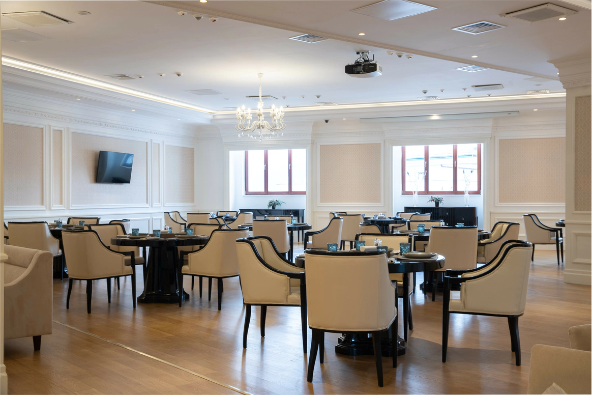 Завораживающие виды и ощущение комфорта, спокойствия, создают все условия для комфортного пребывания, отдыха и работы. Небольшой номерной фонд позволяет сотрудникам уделить внимание каждому гостю, найти индивидуальный подход. Отель расположен в самом центре курорта Красная Поляна на высоте 960 метров над уровнем моря и предлагает 47 элегантных номеров с неповторимым белоснежным интерьером и панорамным видом на кавказские горы. К услугам отеля: аутентичный ресторан «Gatsby» кавказской и европейской кухни, ресторан-трансформер «Вертикаль», просторный тренажерный зал, СПА-комплекс с бассейном, саунами, турецким хаммамом и бильярд-клуб. Стильные многофункциональные переговорные комнаты и современные конференц-залы, площадью от 49,5 кв м до 263 кв м делают «Корпоративный центр» одним из наиболее привлекательных конференц-отелей Красной Поляны. В шаговой доступности канатные дороги, рестораны, апре-ски заведения и центры развлечений курорта Красная Поляна. Благодаря инфраструктуре отеля «Корпоративный центр» и его окрестностей, отдых гостей разнообразен и увлекателен круглый год.