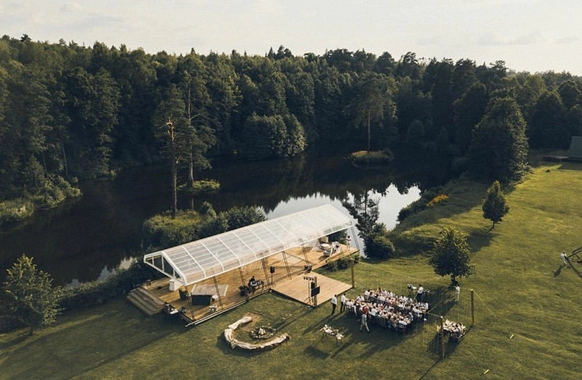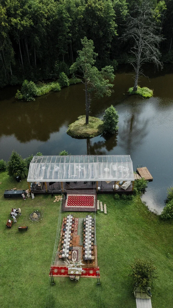 Наша закрытая Резиденция расположена в часе езды от Москвы около Серпухова. Территория в 15 га полностью закрывается под мероприятие, а это значит, что Вас и Ваших гостей никто не потревожит, и нет никаких ограничений по уровню шума ! У воды о расположена большая крытая веранда, которая подходит для проведения праздничного ужина и вмещает комфортно до 100 человек. В хорошую погоду возможно проведения торжества под открытым небом! У веранды прозрачная крыша и нет стен.