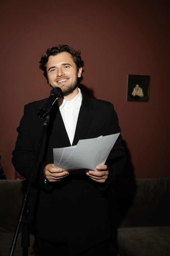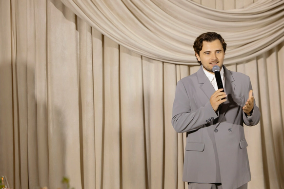 33-летний миллениал. Эмпат. Выбрал выступать со стендапом как личную терапию. Прекрасно понимаю невесту 2026 года, потому что живу с ней. Могу в пятницу искренне и трогательно провести свадебную церемонию, а уже в субботу объявлять профессиональных бойцов в прямом эфире на ТВ. Бегаю марафоны. Готовлюсь к триатлону. Тренирую речь. Изучаю творчество В. В. Набокова. Живу в режиме двустоличья, поэтому есть прописка в «Сапсане».