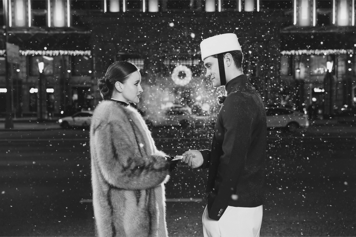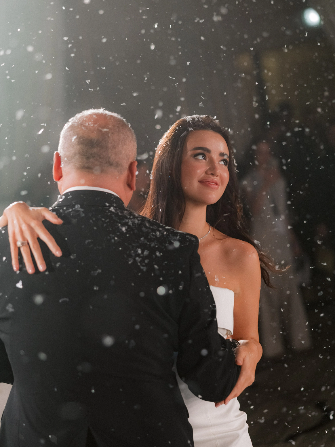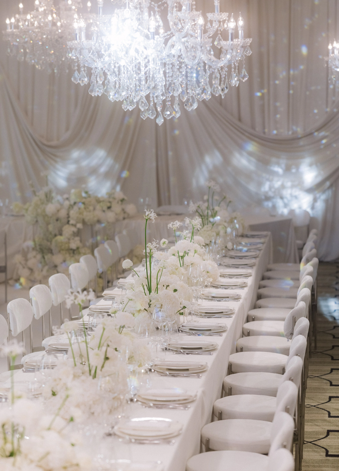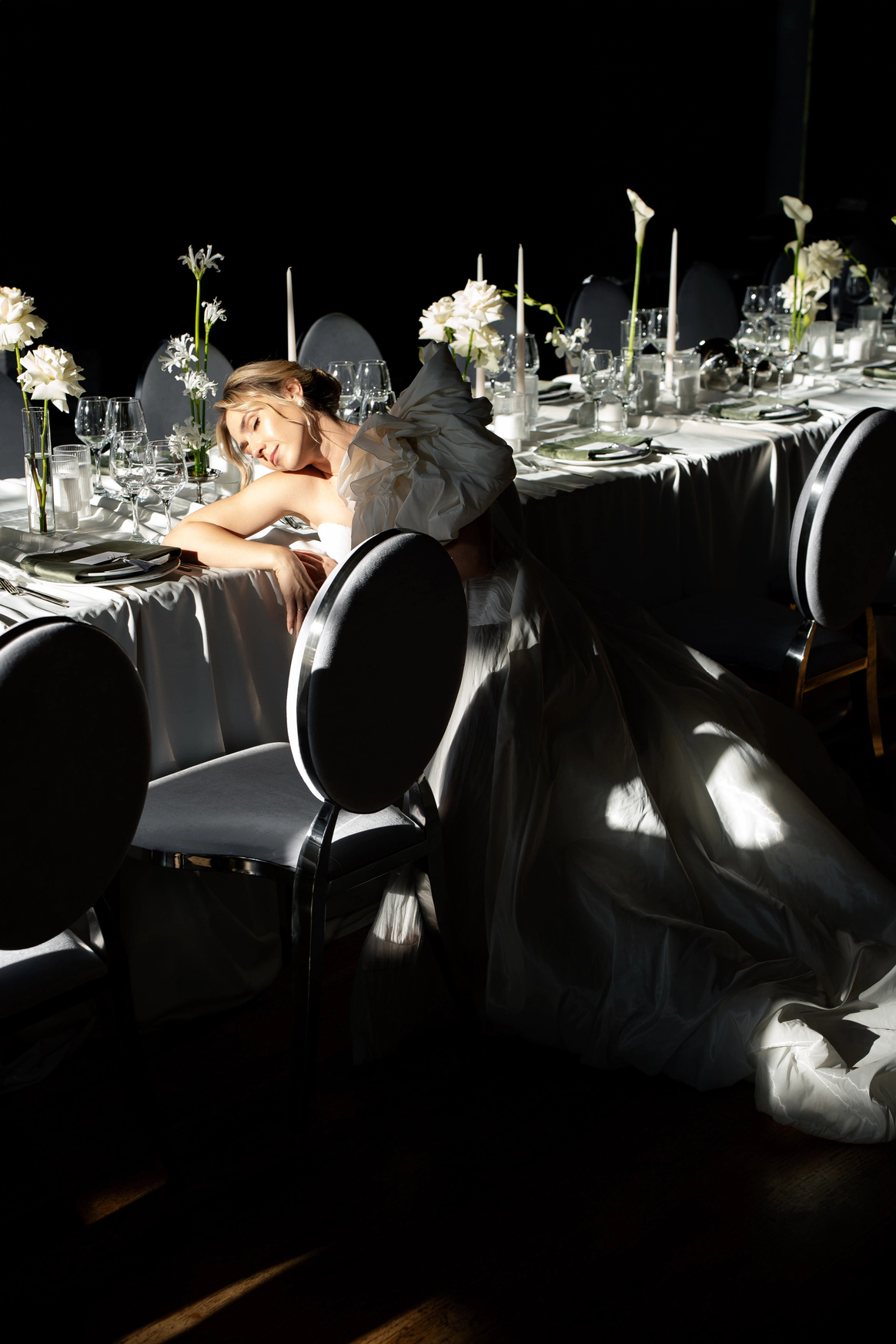 Концепция вдохновлена эстетикой "друзей Оушена" и аристократизмом Виллы Эрба. Строгий Black Tie, кинематографичные отражения в мокрых окнах, глубокие винные оттенки флористики и всего 13 самых близких людей - их личный "синдикат"!