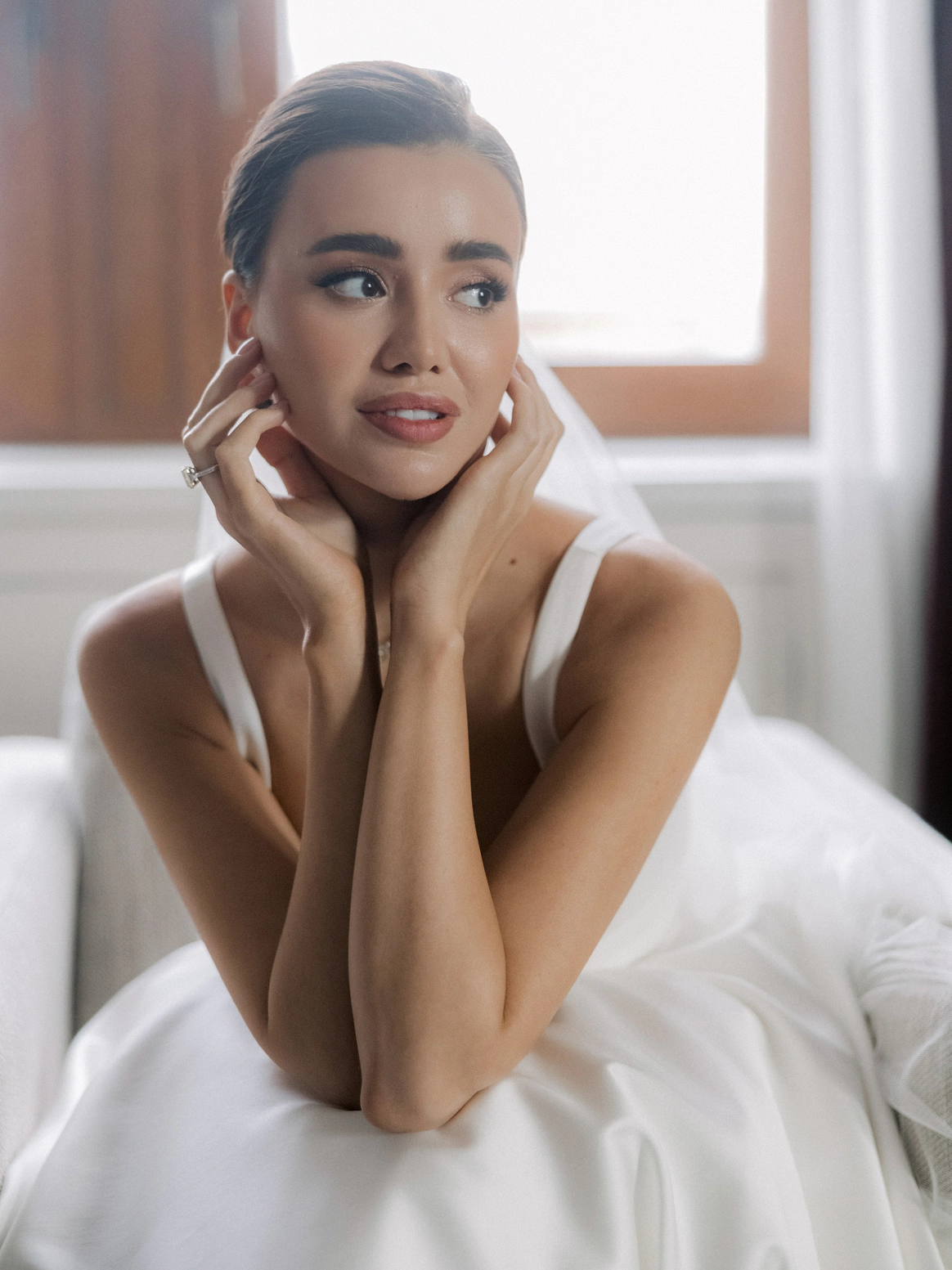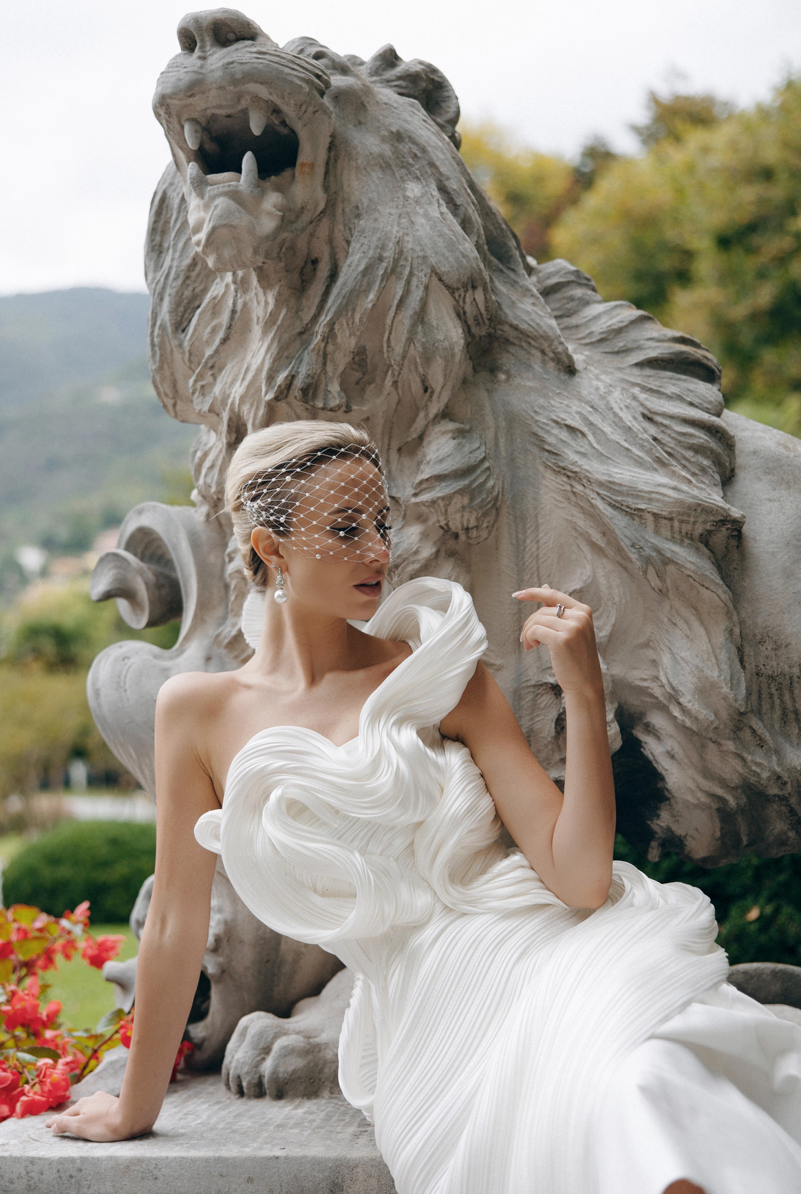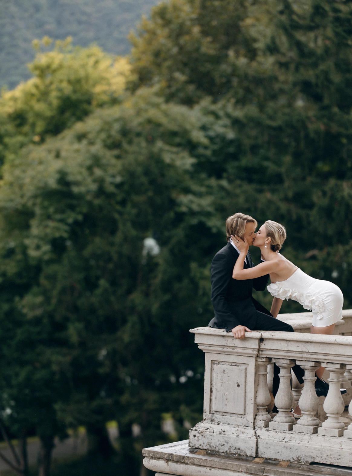 Логистика двух стран. Мы выстроили сложный трансграничный маршрут: утро и сборы невесты прошли в Швейцарии, после чего кортеж пересек границу для официальной росписи и торжества в Италии. Синхронизировать тайминг двух стран в один день - задача, требующая предельной точности.