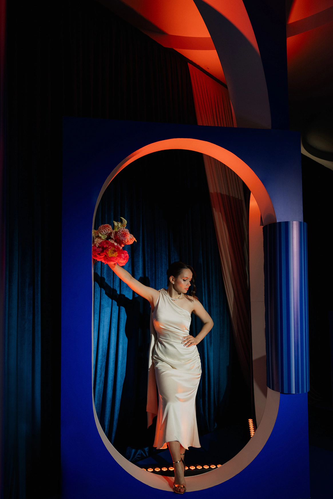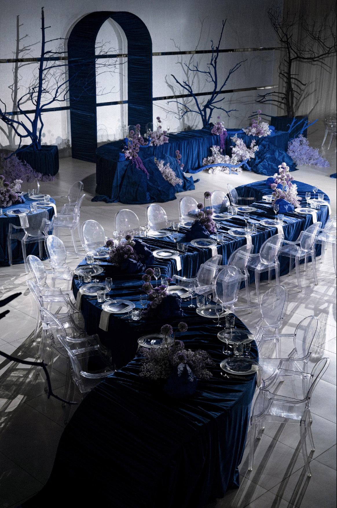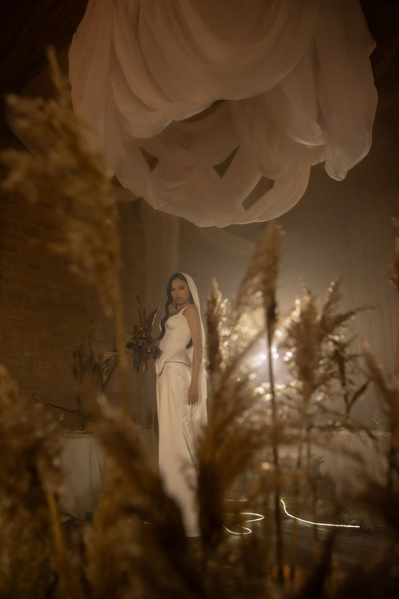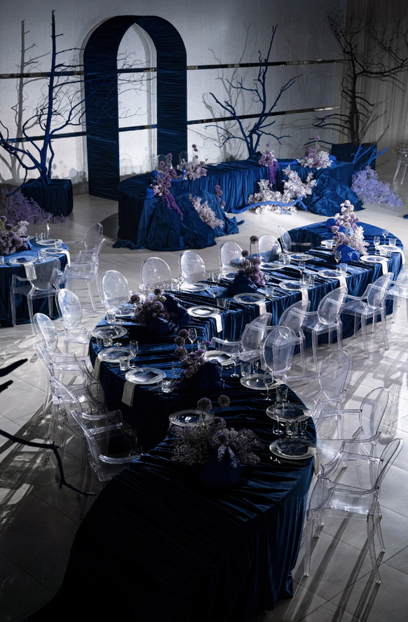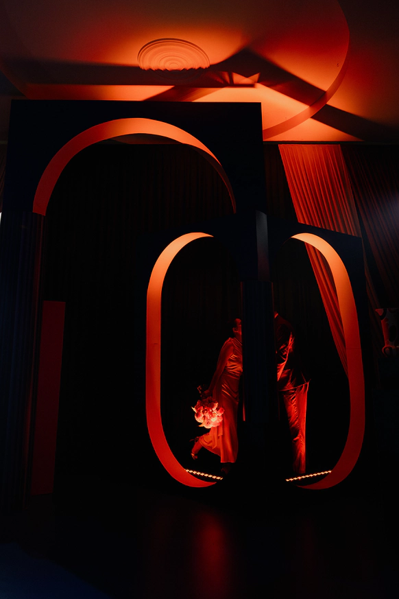 Первоначально планировалась церемония у воды, но ради оптимизации бюджета её перенесли внутрь. После обмена клятвами зона церемонии трансформировалась в президиум, сохранив атмосферу художественной галереи — тёплой, глубокой и чувственной.