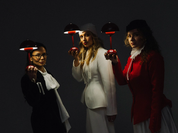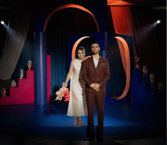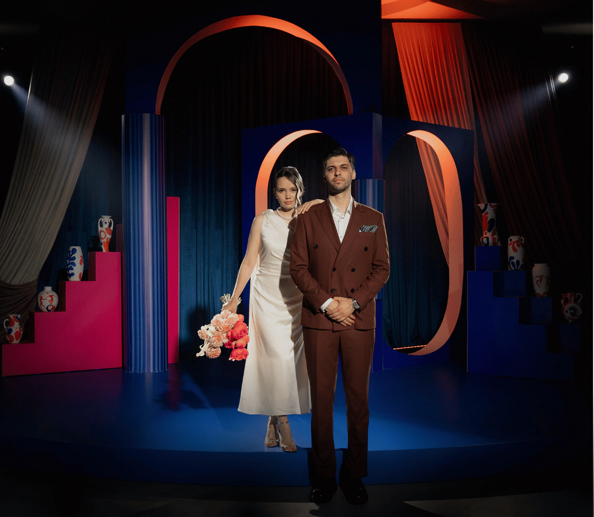 Мы показали их союз как особую форму искусства через язык сюрреализма, цвет и символ. Контраст чёткой геометрии и эмоциональных, живописных решений отражает их отношения, где логика встречается с вдохновением.
