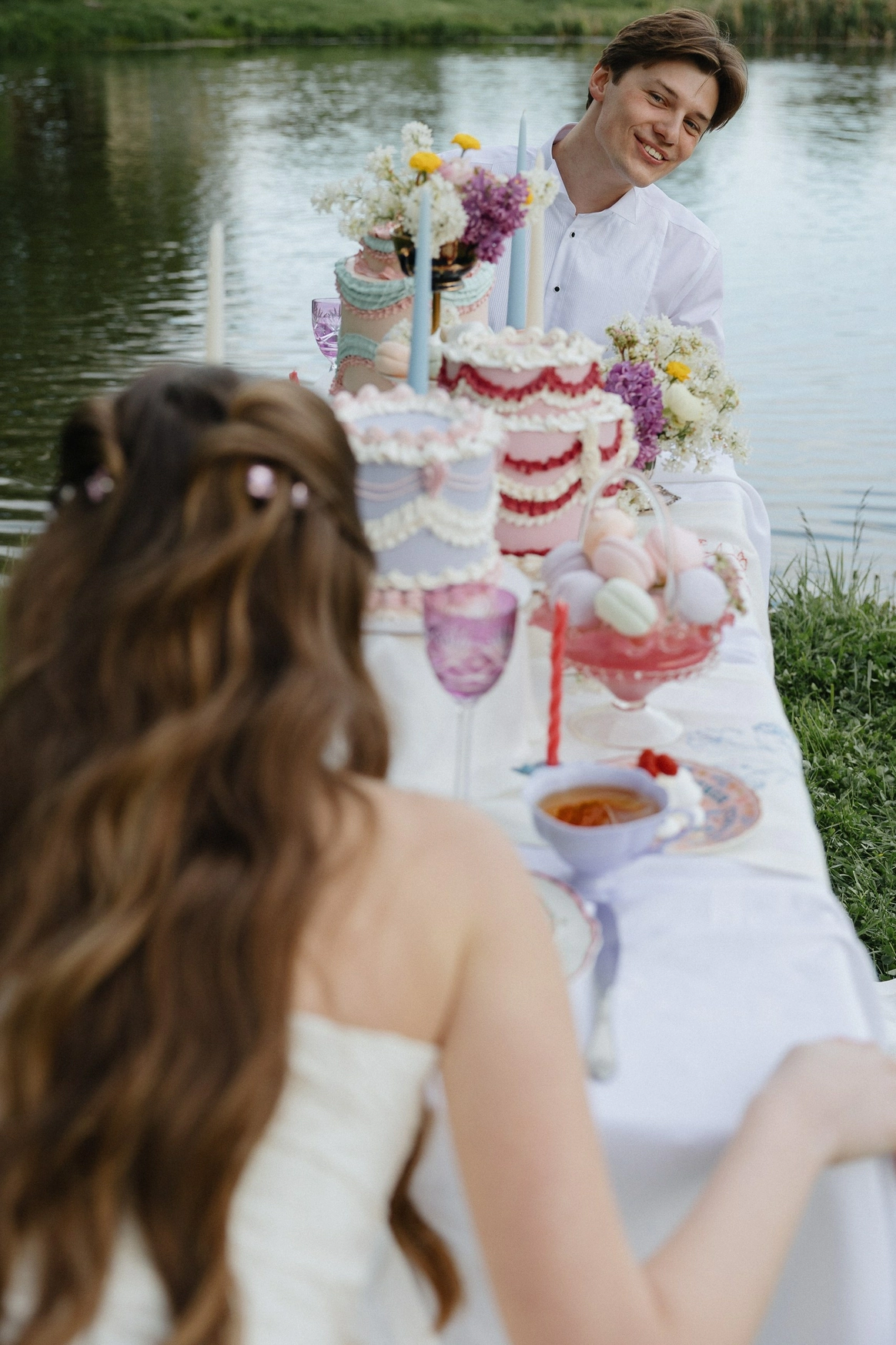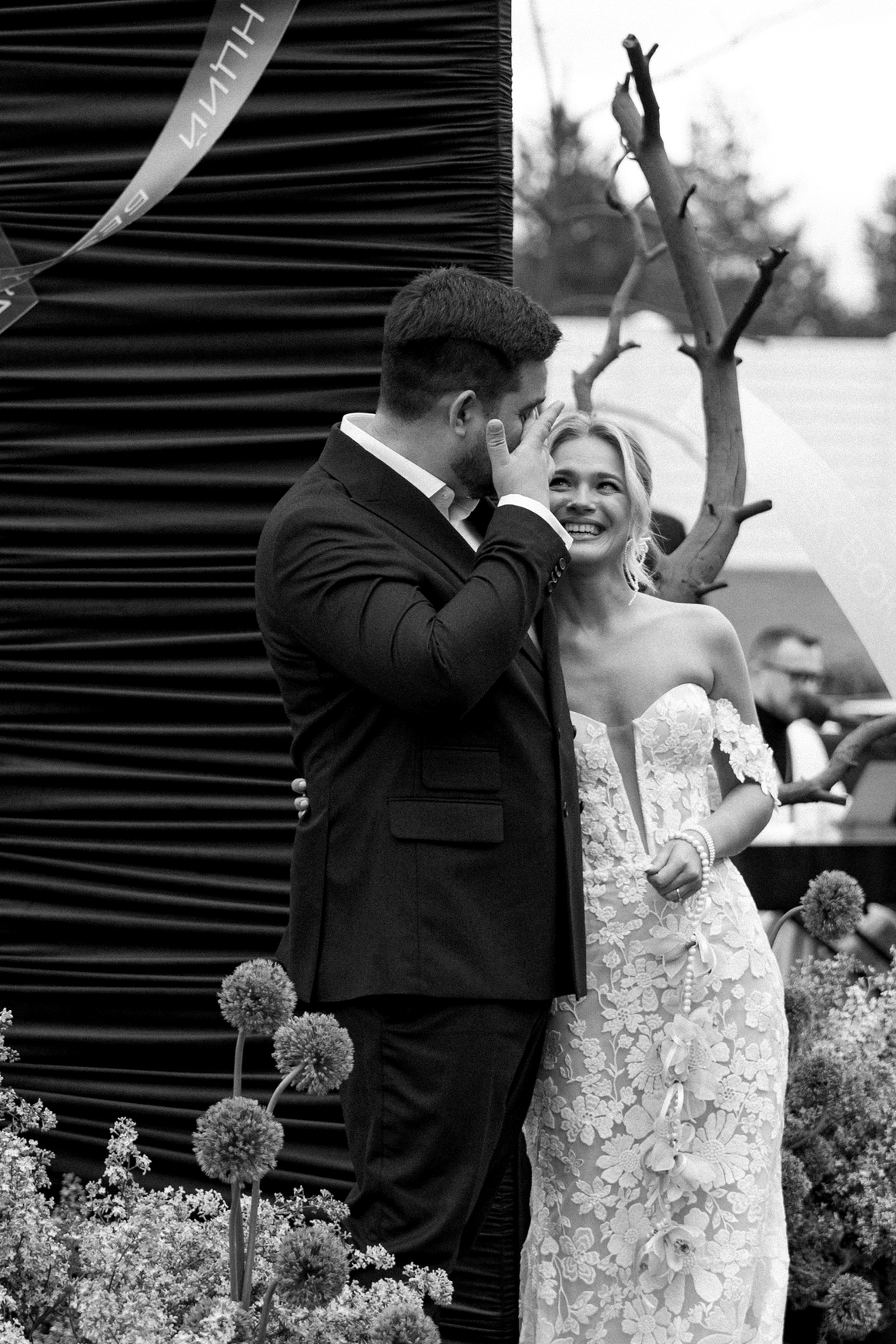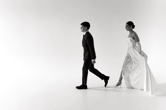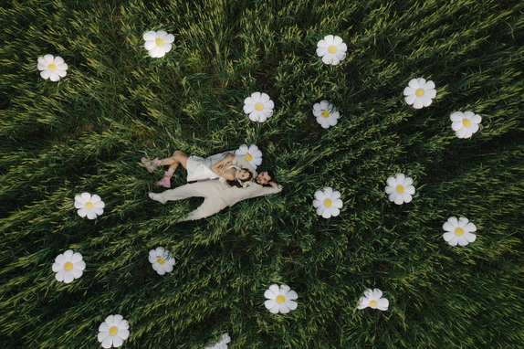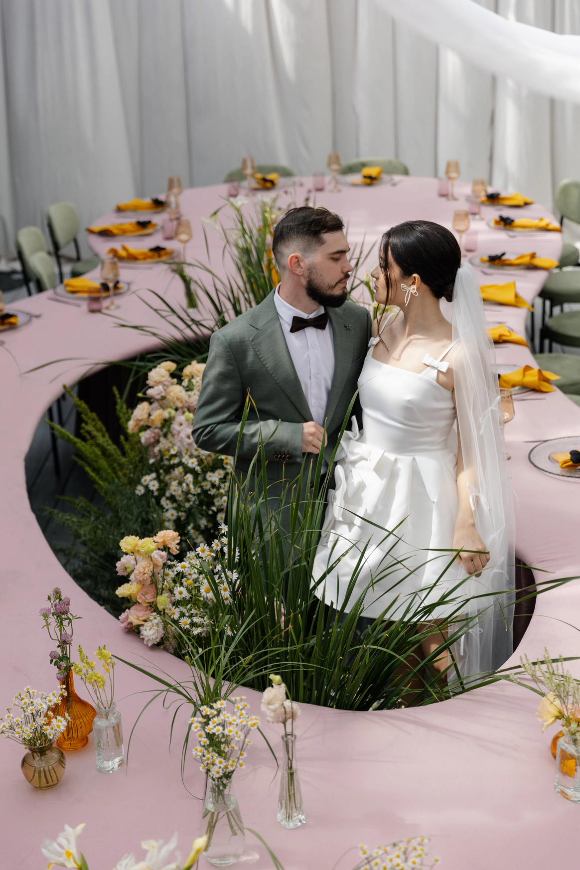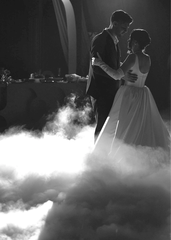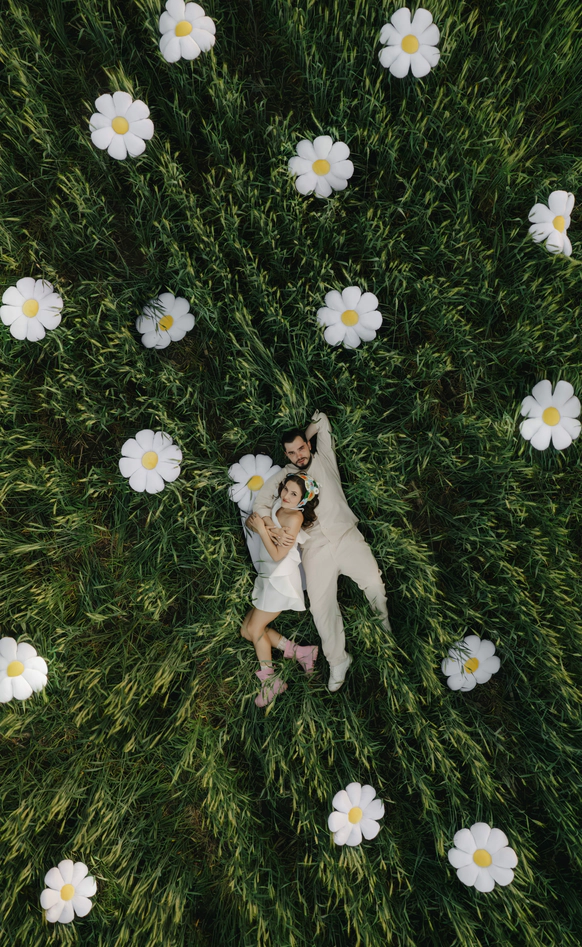 Эта свадьба объединила два разных взгляда на мир — рациональный и творческий. Вахтанг — инженер, для которого важны структура и точность. Аня — выпускница журфака, гуманитарий, работающий в сфере искусства и медиа, влюблённая в сюрреализм и художника Анри Матисса.
