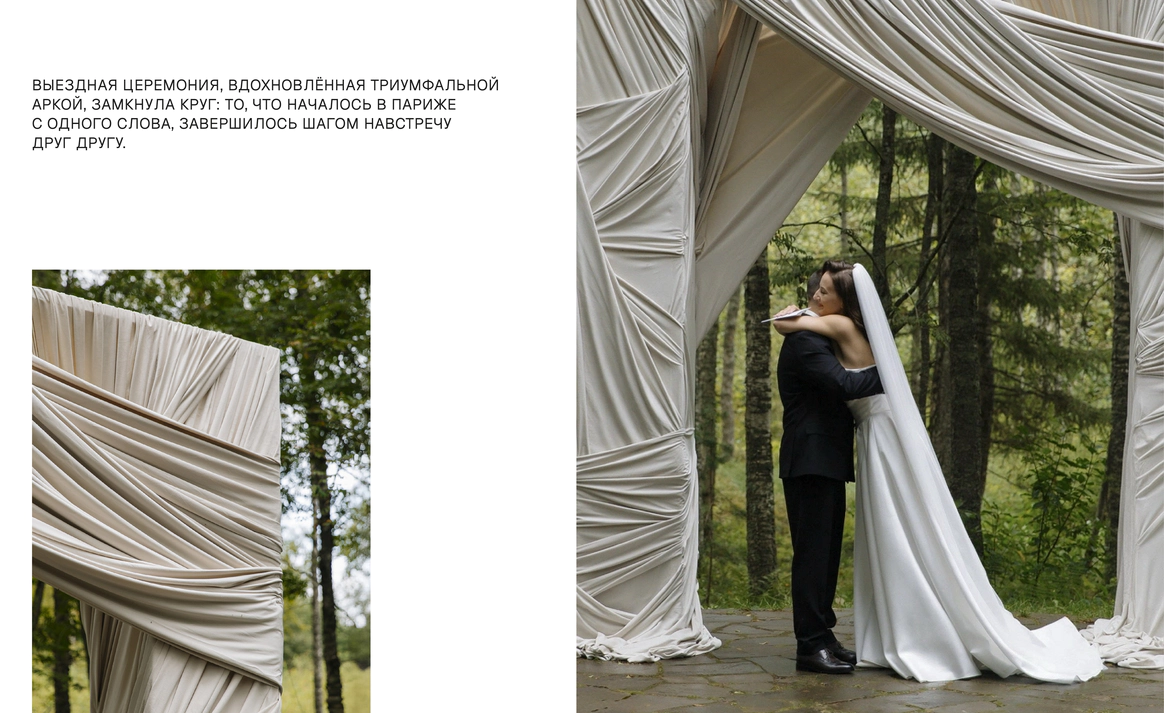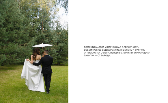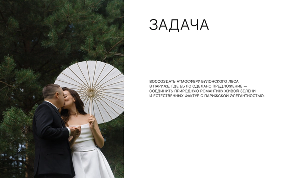 Все решения поддерживают атмосферу момента в Булонском лесу, где соединились природа и город. Личная история и визуальный образ объединены в цельную систему.