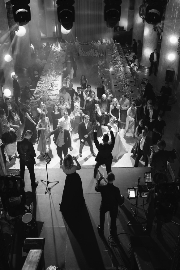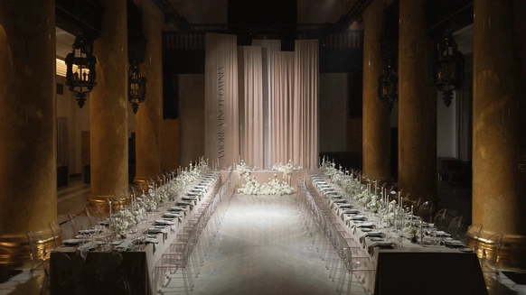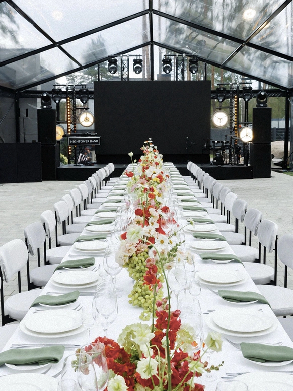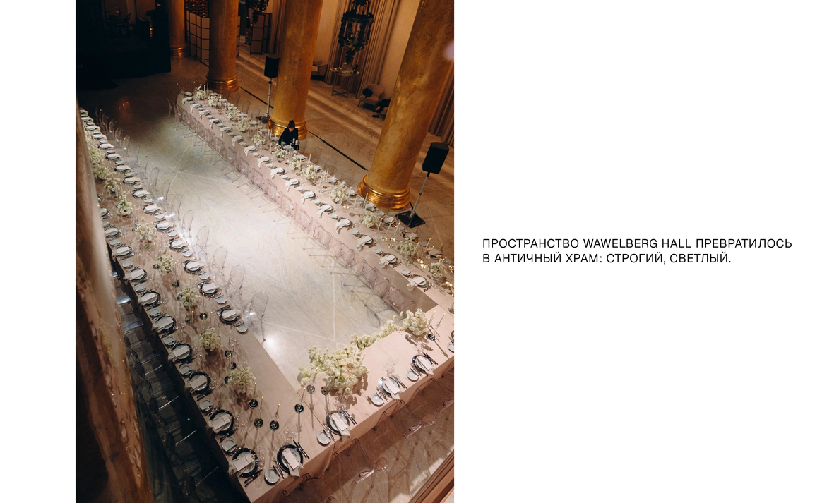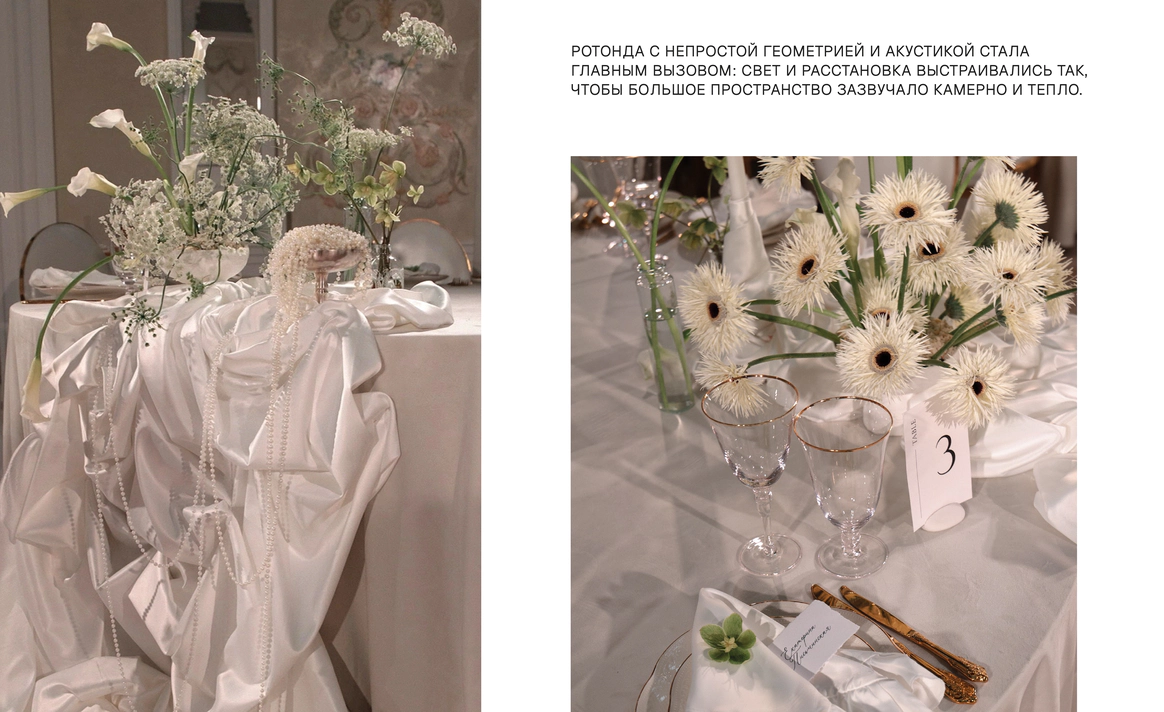 Ужин прошёл в ротонде со сложной геометрией и акустикой, что потребовало точной работы со светом и расстановкой.