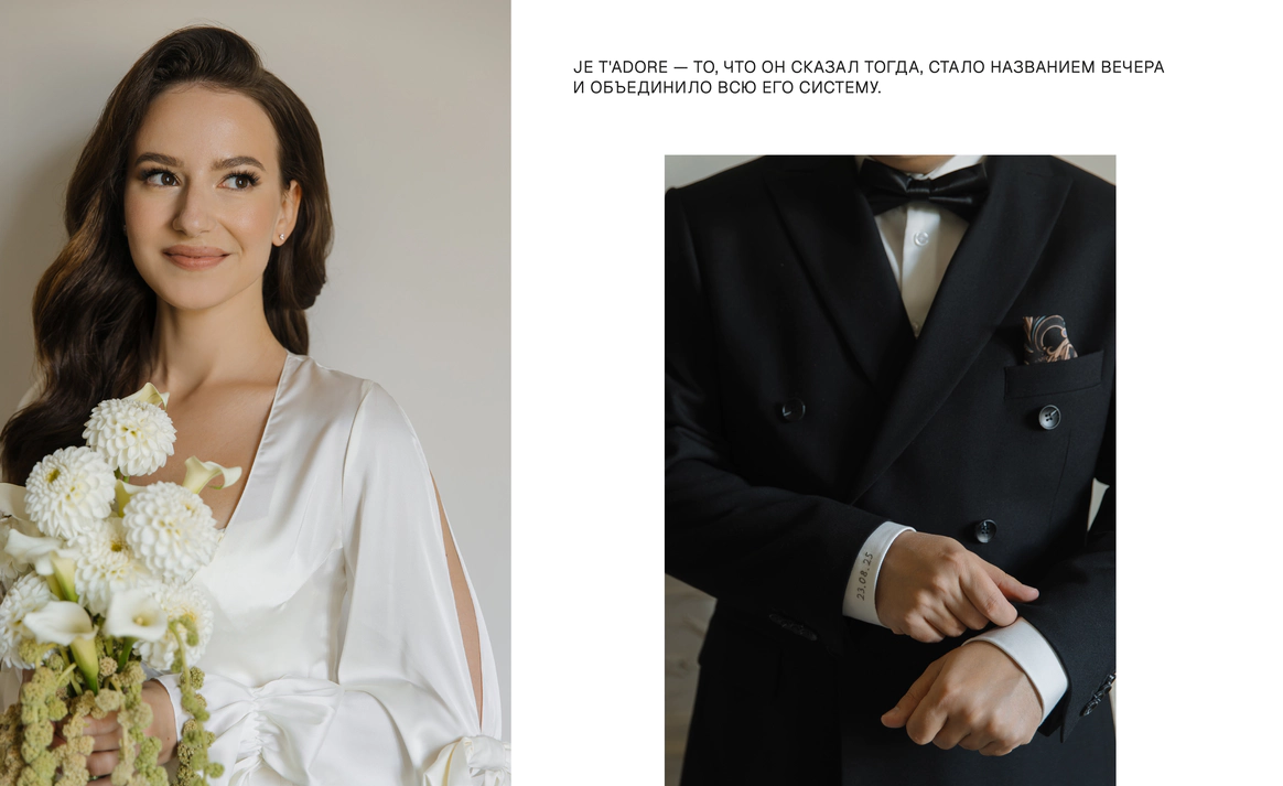 Je t’adore стала эмоциональным центром проекта и задала интонацию всей свадьбы, объединив смысловую и визуальную систему.