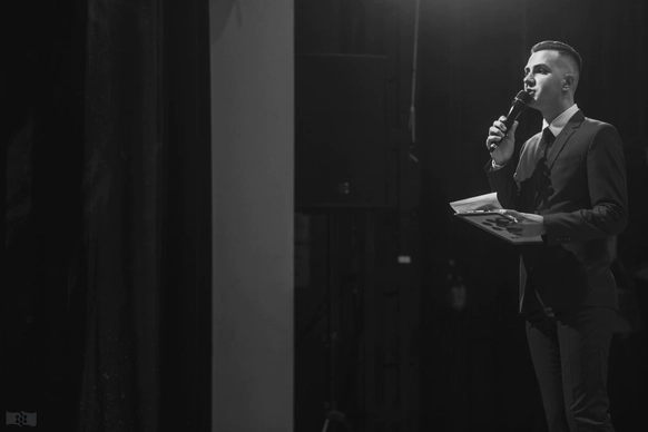 В 2022 году принял участие в конкурсе ведущих. Ушел с победой и с грамотой! В 2023 году вел события для подростков Красноярского края. Значит - молодежный, йоу. В 2024 году был администратором и ведущим университетской лиги КВН. К моим грамотам добавилось чувство юмора. В 2025 году впервые подал заявку на премию Wedding Awards В 2026 году цель попасть в ТОП 100. Хоть бы хоть бы Подведем итог: спортсмен, активная молодежь, участник престижной премии, дипломированный специалист с чувством юмора и пока не научился ставить реальные цели)