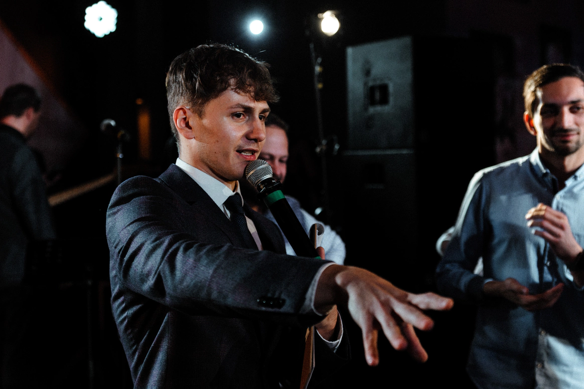 Лучшая камерная свадьба на Алтае. Кинотибилдинг для Europark. Компания хотела раскрыть творческий потенциал сотрудников. Я сделал для них формат корпоративных съёмок. Мы взяли старые новогодние фильмы и сняли их в новых жанрах. Встреча участников PrimeTime Фитнес. Работа с большой аудитория, где необходимо держать внимание людей, пока организатор грамоты дописывает. Корпоратив PepsiCo. На этом празднике было более тысячи человек! Спортивное событие одного банка, где я комментировал футбольный матч сотрудников против звезд русского футбола. До корпоратива мне поставили планку: "До этого ведущим был Ургант". В итоге, меня похвалил Тимофей Баженов (Во как).