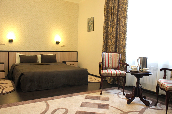 Если Вы устали от городского шума и суеты, Подмосковный Арт-отель «Пушкино» — как раз то, что Вам нужно. Приглашаем Вас отдохнуть в приятной обстановке на лоне природы. Мы находимся в живописном уголке города Пушкино, всего в 20 км от Москвы, где созданы все условия для полноценного расслабляющего и активного отдыха. Наш отель предлагает Вам уютное размещение, домашнюю атмосферу и различные услуги. В комплексе 24 номера, ресторан, сауна, СПА-комплекс и бассейн. В Арт-отеле «Пушкино» будет удобно всем: семьям с детьми и командировочным, туристам, путешественникам и влюбленным парам, а также людям с ограниченными возможностями. Все номера оформлены в разных стилях. В оснащении номеров использованы современные материалы и оригинальные детали, во всех номерах предусмотрены телевизор, кондиционер, телефон. Сотрудники Арт-отеля «Пушкино» заботятся о своих клиентах и стараются разнообразить Ваше время препровождения. Для любителей активного отдыха на территории отеля есть бильярд, настольный теннис, батут, возможность взять на прокат велосипеды. Ваши дети смогут насладиться игрой на специально созданной для них площадке, а также искупаться в бассейне. Ценителям прекрасного понравятся экскурсии по музеям Подмосковья (Жостово, Сергиев-Посад, усадьба Федора Тютчева и др.), которые будут интересны и взрослым, и детям. Изюминкой и гордостью нашего отеля является такое направление, как инватуризм. Мы готовы принять у себя гостей с ограниченными возможностями. Здание отеля оборудовано большим лифтом, широкими дверными проемами, специальными поручнями, что облегчает передвижение. Если Вы ищите тихое место с высоким уровнем сервиса и приемлемыми ценами, наш Арт-отель – то, что Вам нужно. Почувствуйте практически домашнюю обстановку и заботу в каждой мелочи, отдохните с удовольствием в Подмосковном Арт-отеле «Пушкино»! Приезжайте и летом, и зимой, мы рады новым гостям в любое время года!