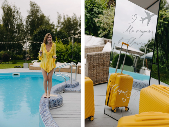 Кульминация вечера - роспись гостями фона выездной церемонии и купание в бассейне.