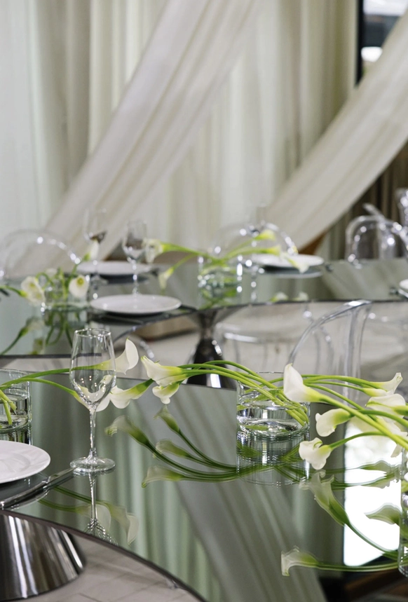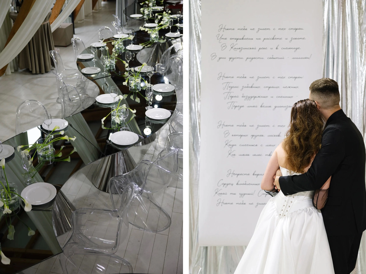 Металлик в концепции отражает твёрдость характера жениха. Каллы же подчеркивают гибкость и мягкость невесты в этом союзе.