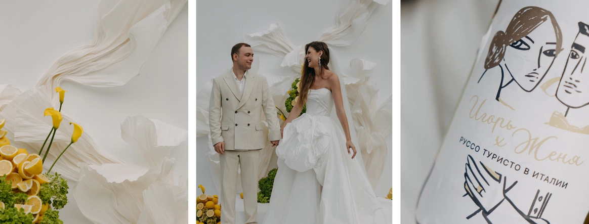 Свадьба должна была стать не просто торжеством, а приключением «Руссо Туристо», где каждый гость мог бы окунуться в атмосферу Италии, но при этом ощутить тепло и радушие русской души с помощью ассоциативных деталей.
