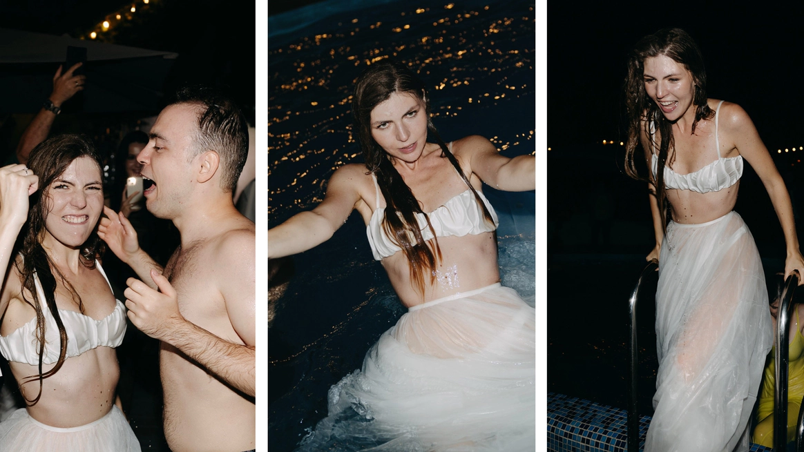 Еще одним из пожеланий пары было наличие водоема или бассейна на площадке, где можно было бы всем окунуться, создав неожиданный экшн в конце свадебного дня.