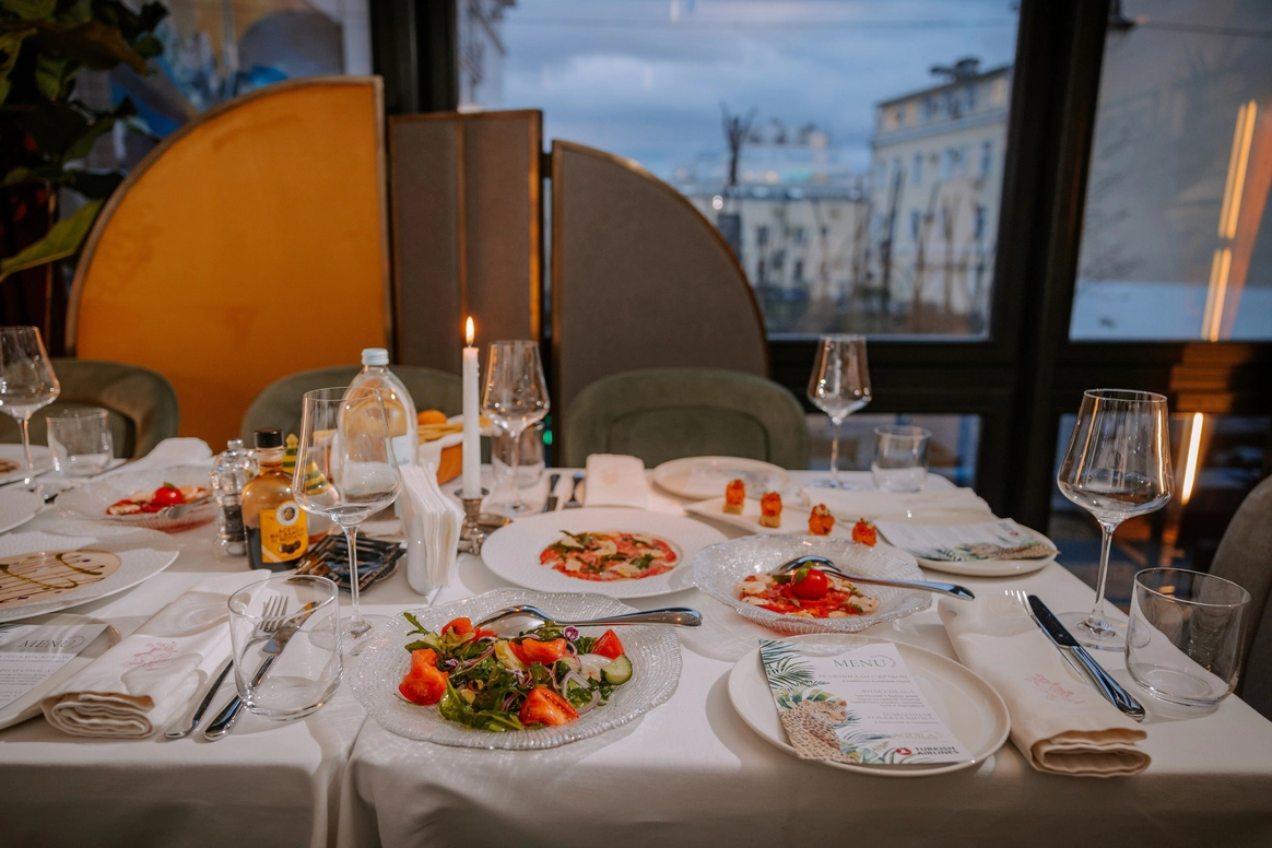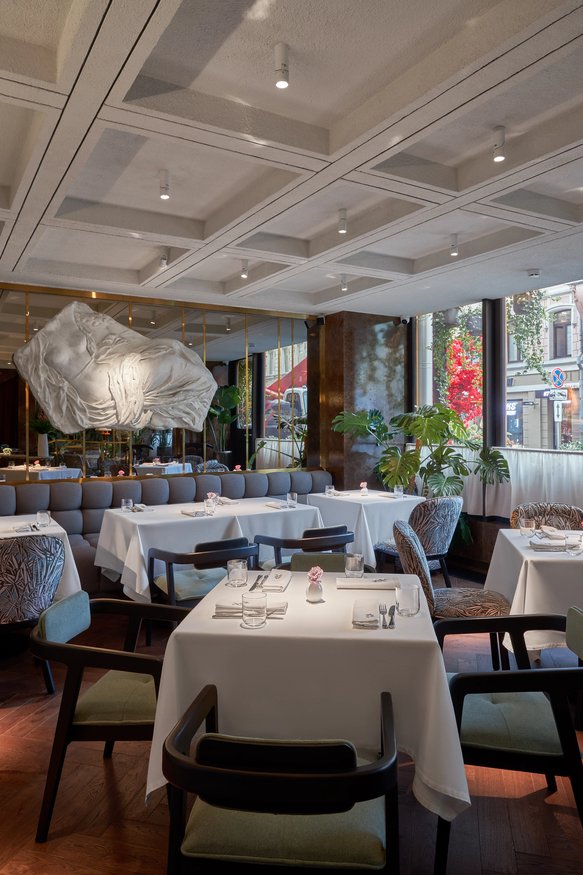 Большой, нарядный и к нарядам призывающий, завораживающий IL MATTO, как и аркан таро, символизирует радость жизни, легкость и свободу от предрассудков. Карта марсельского таро IL MATTO с изображением шута с розой в руке, котомкой за спиной и играющей в его ногах собачкой стала для итальянского шеф-повара Джанмария Сапия (Mollusca, Rouge) сначала поводом для татуировки, олицетворяющей свободу, жизненный шанс и освобождение от внутренних барьеров, а затем дала имя и новому итальянскому ресторану от Mollusca Group в самом центре Москвы – он открылся в августе на Большой Дмитровке, 9с1. Джанмария Сапия, бренд-шеф ресторана, поработал над меню ресторана в дуэте со своим старым другом Джузеппе Риккебуоно, шеф-поваром ресторана Il Vescovado, который уже более 20 лет удерживает звезду Michelin. Совместными усилиями шефы создали меню, очищенное от всего наносного: получилась итальянская классическая кухня – такая, какой ее знают итальянцы в Италии. Ресторан не про скромность, а про праздник — большой и нарядный, так что здесь воспевают радость жизни, легкость, свободу от предрассудков — и красивые образы! Интерьер разработала Саша Винер в команде с дизайнерами архитектурного бюро DBA Group: в отделке и декоре использованы разные типы итальянского мрамора, бархатные панно с авторской росписью, панели из шпона корня тополя.