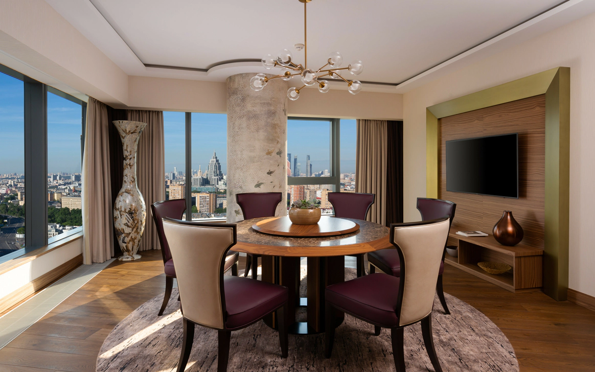 Влюбляйтесь в друг друга заново и celebrate your love в Radisson Blu Olympiyskiy, стильном высотном отеле в центре Москвы. Номера в скандинавском стиле, выполненные в спокойных пастельных тонах с яркими акцентами и использованием таких натуральных материалов, как итальянский мрамор, древесина, камень, идеально подойдут для ценителей комфорта и лаконичного дизайна. Из всех номеров отеля без исключения, расположенных с 14 по 32 этаж, открываются потрясающие виды на знаковые достопримечательности – небоскребы «Москва-Сити», сталинские высотки и Останкинскую телебашню. Любимые номера среди гостей – Junior Suite с круглой ванной у панорамного окна или элегантный двухкомнатный люкс. Благодаря панорамным окнам в пол в номерах естественное освещение для предсвадебных сборов, а вечером невозможно не поддаться очарованию ночного города – лучший антураж для первой брачной ночи. Не случайно отель стал победителем World Luxury Hotel Awards в номинации The Best Luxury Romantic Hotel – он идеально подходит, чтобы насладиться романтикой на высоте Для свадебного торжества выберите Бальный зал отеля, уютный зал Blue, роскошные люксы Presidential или Executive с абсолютной приватностью и обзором на Москву с 31 и 32 этажей. Безупречная организация, новейшее оборудование и высокое качество сервиса Radisson гарантируют, что ваш особенный день будет таким, как вы мечтали.