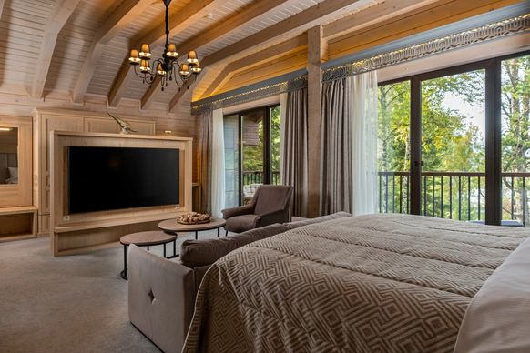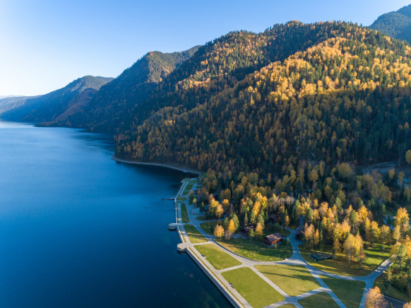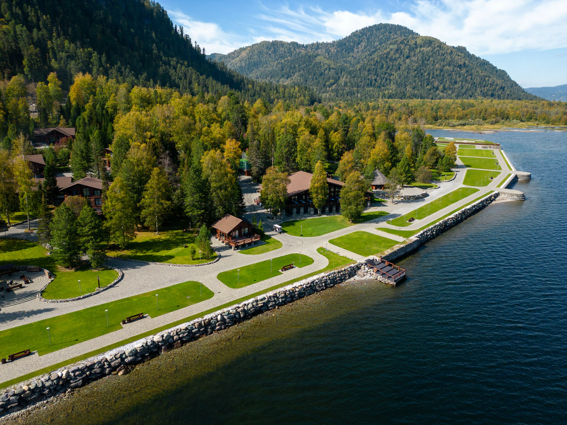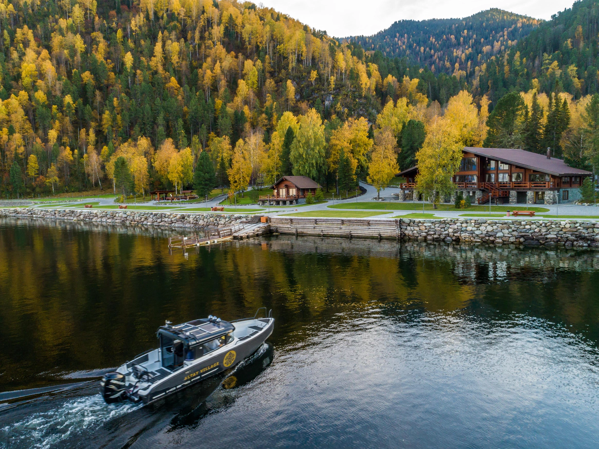 Altay Village Teletskoe – курорт премиум-класса, расположенный в самом сердце Алтая, на берегу первозданного Телецкого озера. Шале курорта выполнены из массива кедра, а их интерьер сочетает в себе эксклюзивный, современный дизайн и использование самых экологичных материалов. Уединенный отдых в окружении чарующих гор и заповедной тайги, экскурсии на катере по горным рекам и озеру, прогулки на вертолете к самым непроходимым местам - все это Altay Village Teletskoe! Расположенный в сотнях километров вдали от шумных мегаполисов и промышленных предприятий, Altay Village Teletskoe – единственный пятизвездочный курорт Алтая на Телецком озере, где Вам будет предложено первоклассное обслуживание, комфортабельное размещение и всё, что нужно для приятного досуга: — одно- и двухэтажные шале; — ресторан «Озеро» со специальным меню из дичи и свежей рыбы, которую добывают в горных реках, впадающих в озеро; — прогулки на вертолете, охота и рыбалка, экскурсии на катере и автомобиле, экскурсии на багги, дайвинг, экстремальный туризм; — SPA процедуры: пантовые ванны, ванны алтайской принцессы, релаксирующий массаж; — настоящая сибирская баня с профессиональными мастерами русского пара; — современный фитнес-зал, теннисный корт, просторный бассейн.
